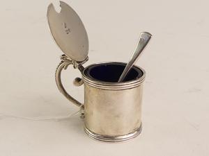 victorian sterling silver mustard pot, william hutton & sons ltd., london 1899, 2" x 2 1/2", 65 grams without liner