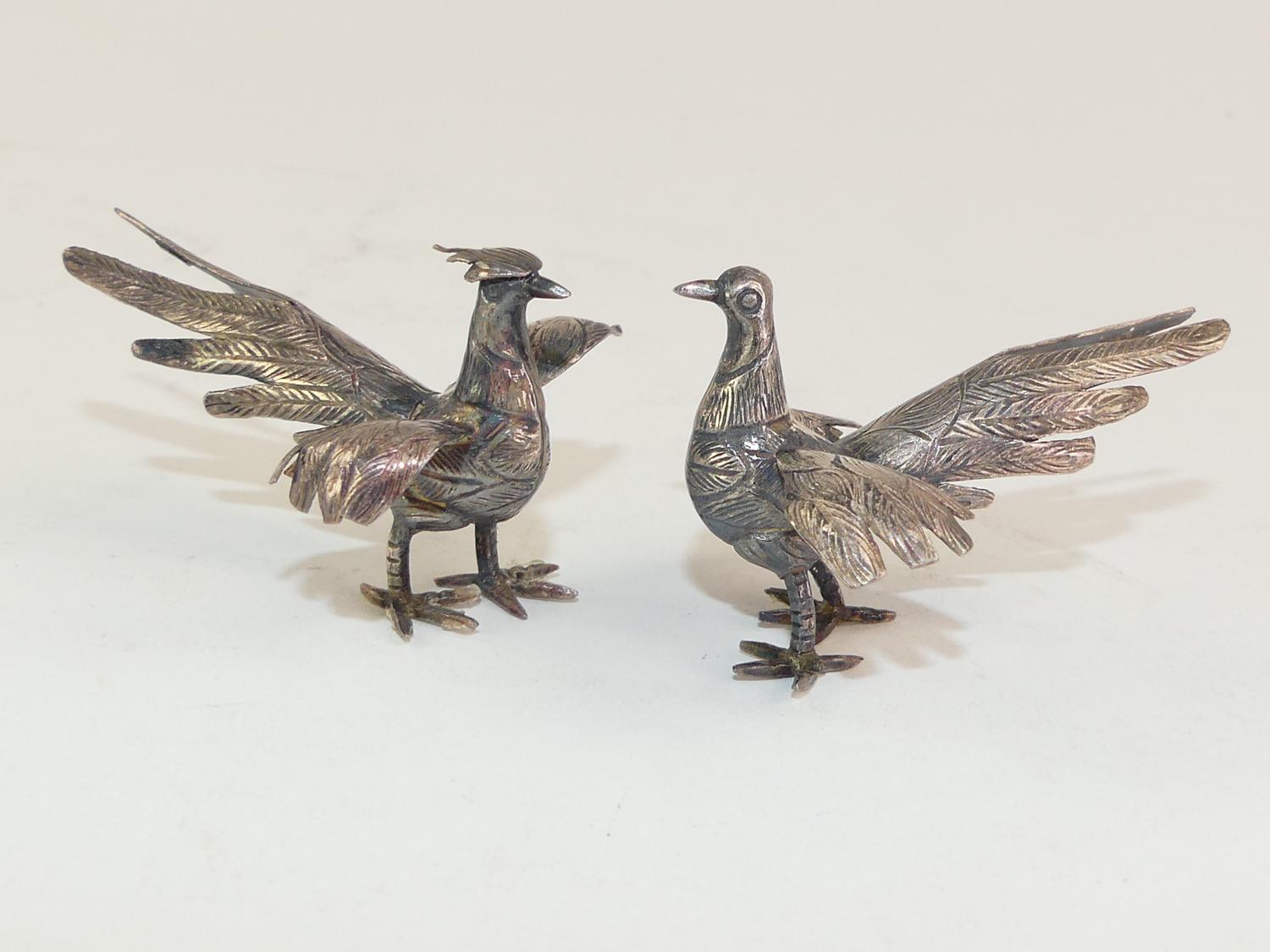 pair of chinese 950 silver fighting cocks, length 2", 16 grams