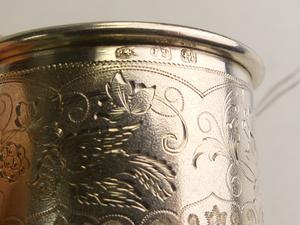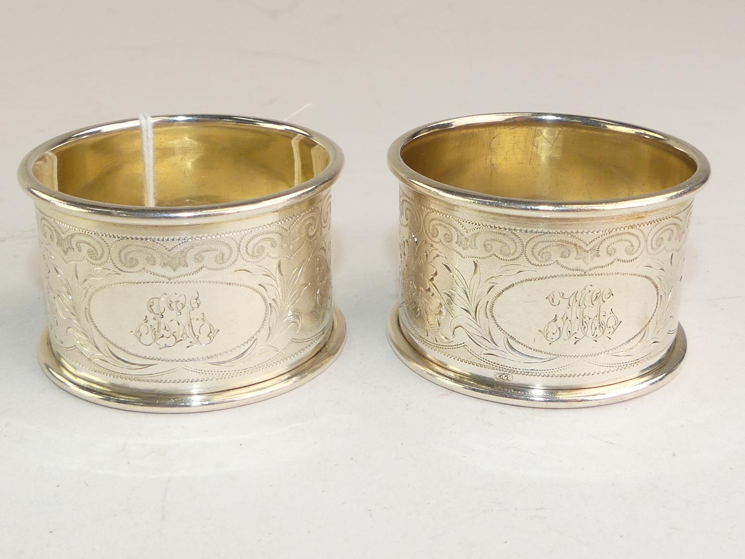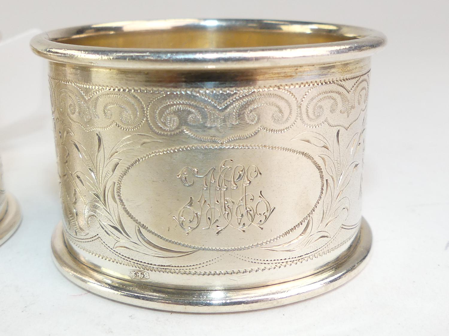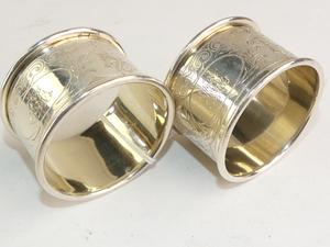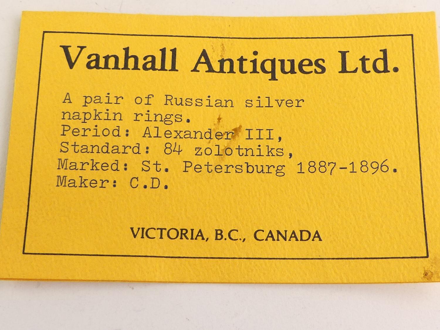 pair of russian alexander iii silver napkin rings, hallmarked c.d., st. petersburg 1887-1896, 1 1/4" x 2", 77 grams,