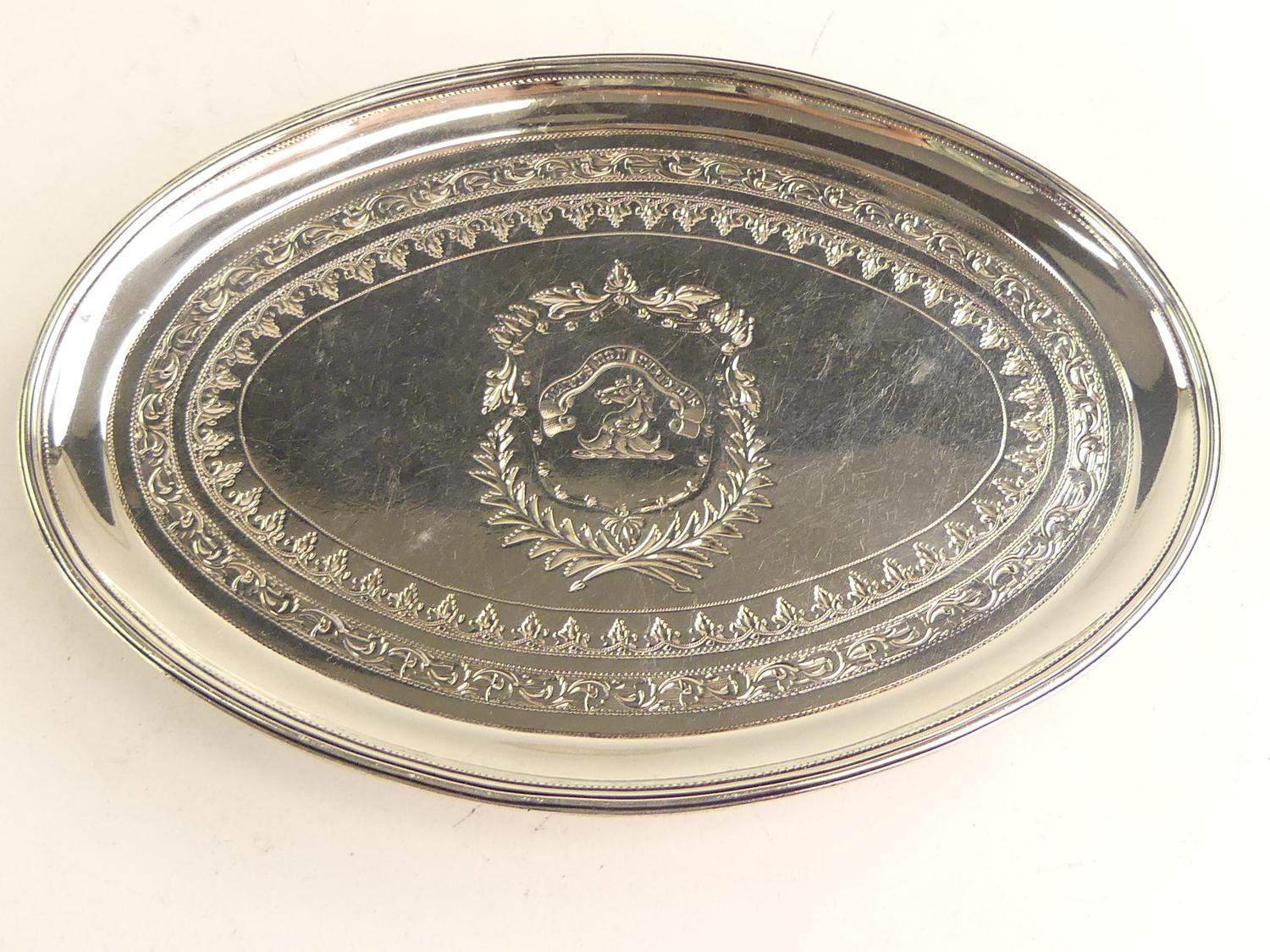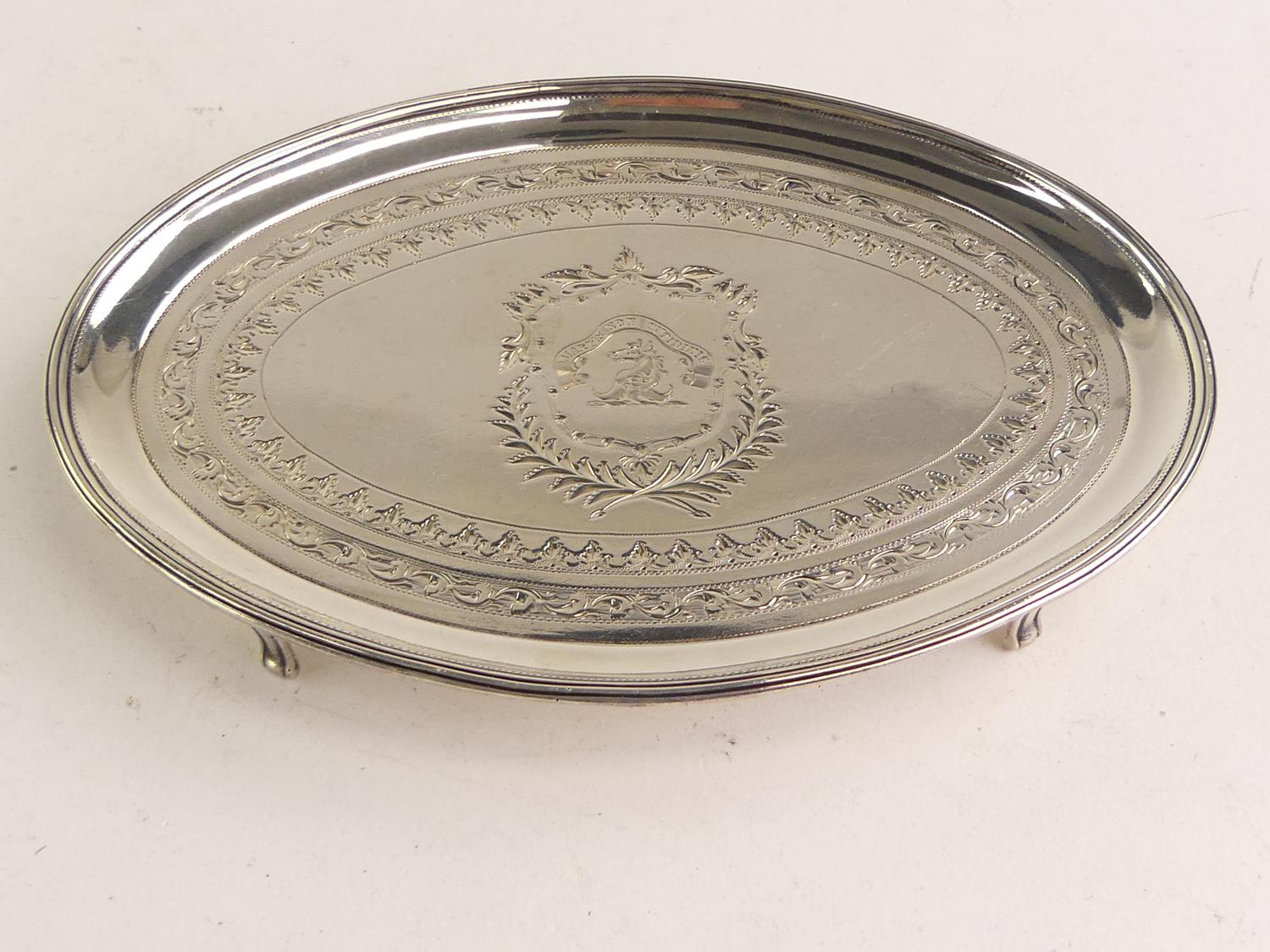 george iii sterling silver footed oval salver, robert hennell, london 1795, 1" x 7" x 5", 140 grams