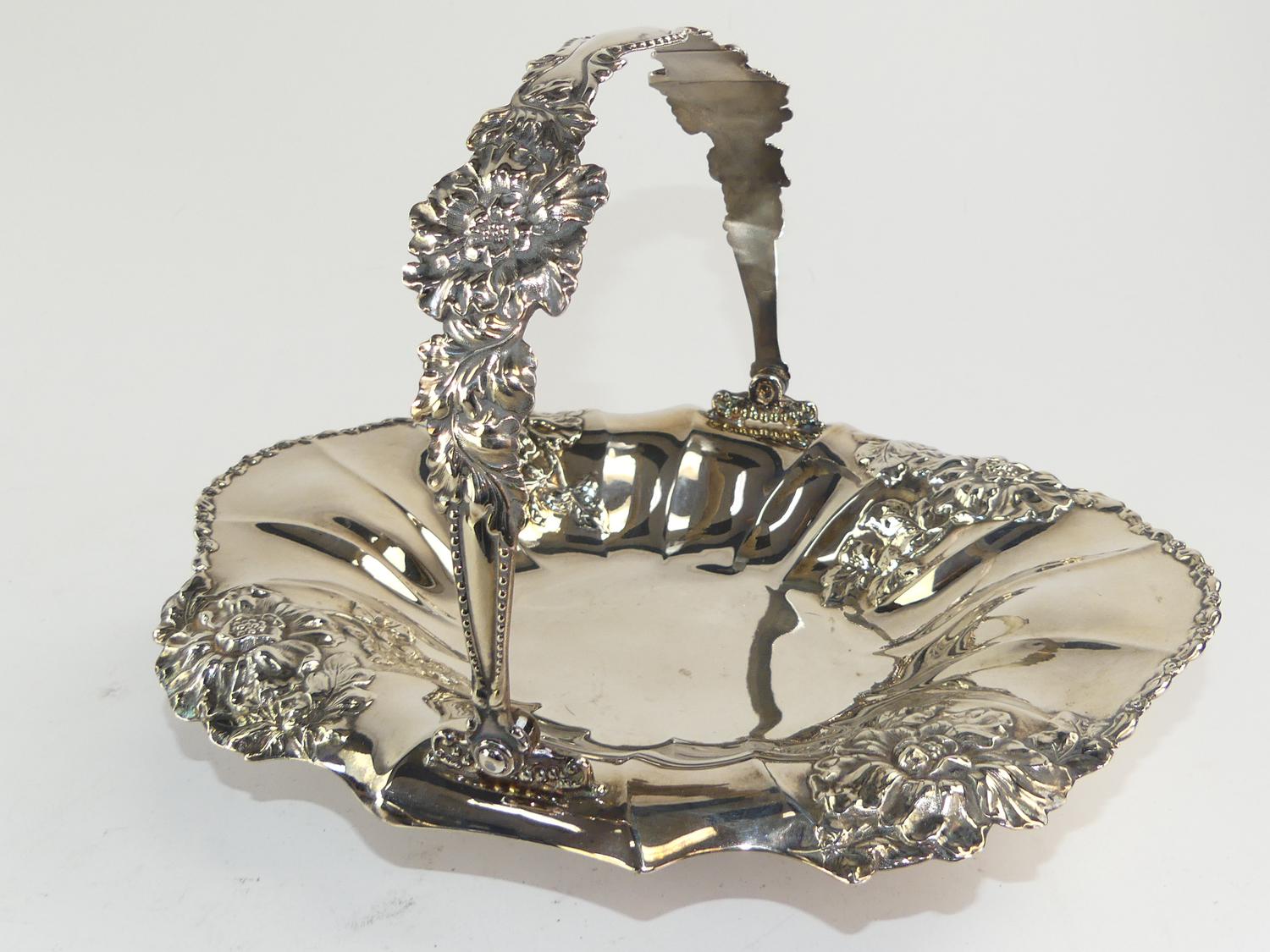 pairpoint silver plate basket, 19" x 12" x 9"