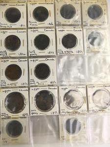 lot of upper canada and quebec tokens and coins, 29 coins in total