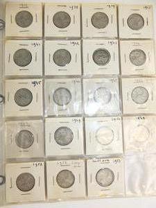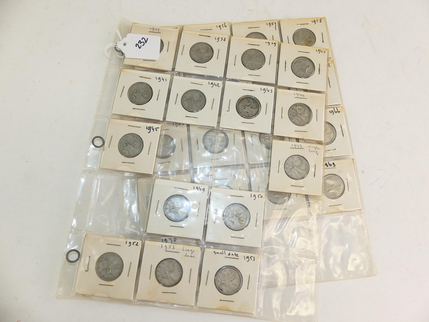 1937, 1938, 1939, 1940, 1941, 1942, 1943, 1944, 1945, 1947 maple leaf, 1949, 1950, 1952, 1953 large date, 1953 small date, 1955, 1956, 1957, 1958, 1959, 1960, 1962, 1963, 1964, 1965, 1966, 1967, 1968, 1969, 1970