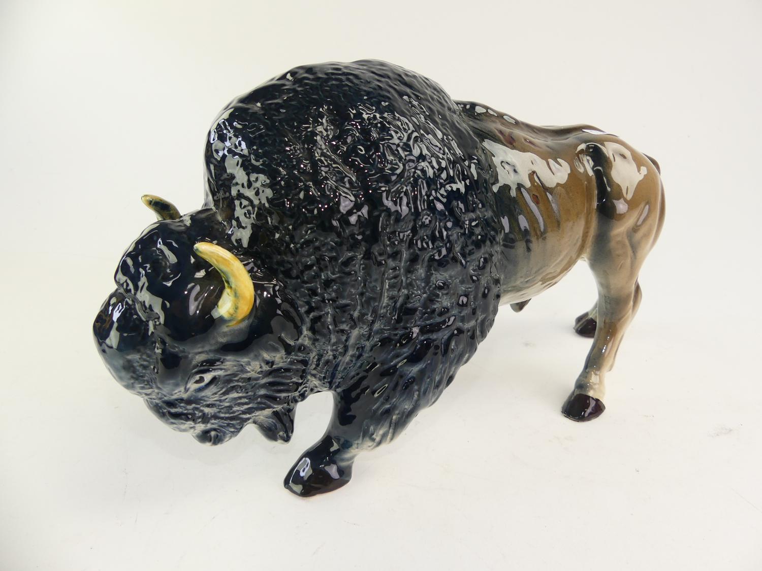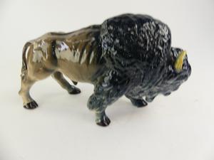 melba ware english porcelain buffalo figure, 8 1/2" x 14" x 5"