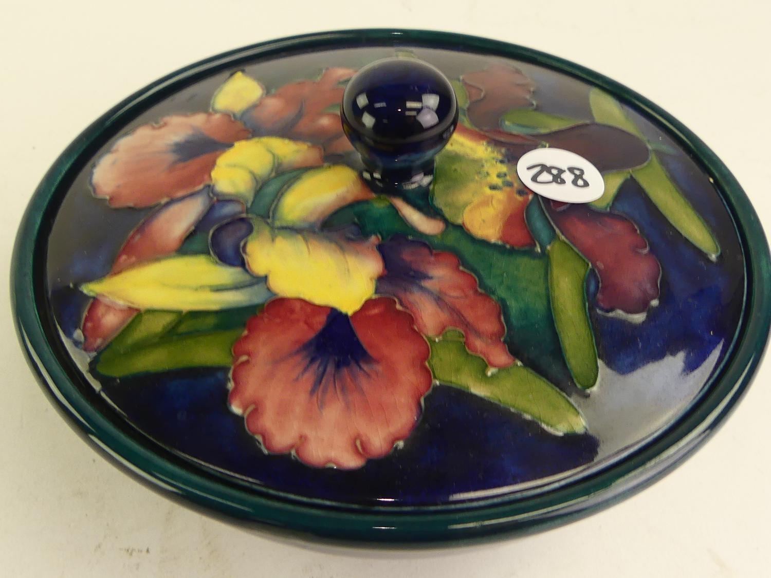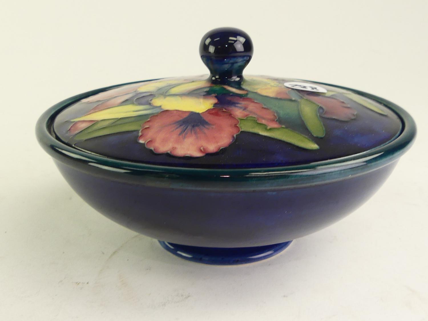moorcroft art pottery covered bowl, 4" x 6 1/2"
