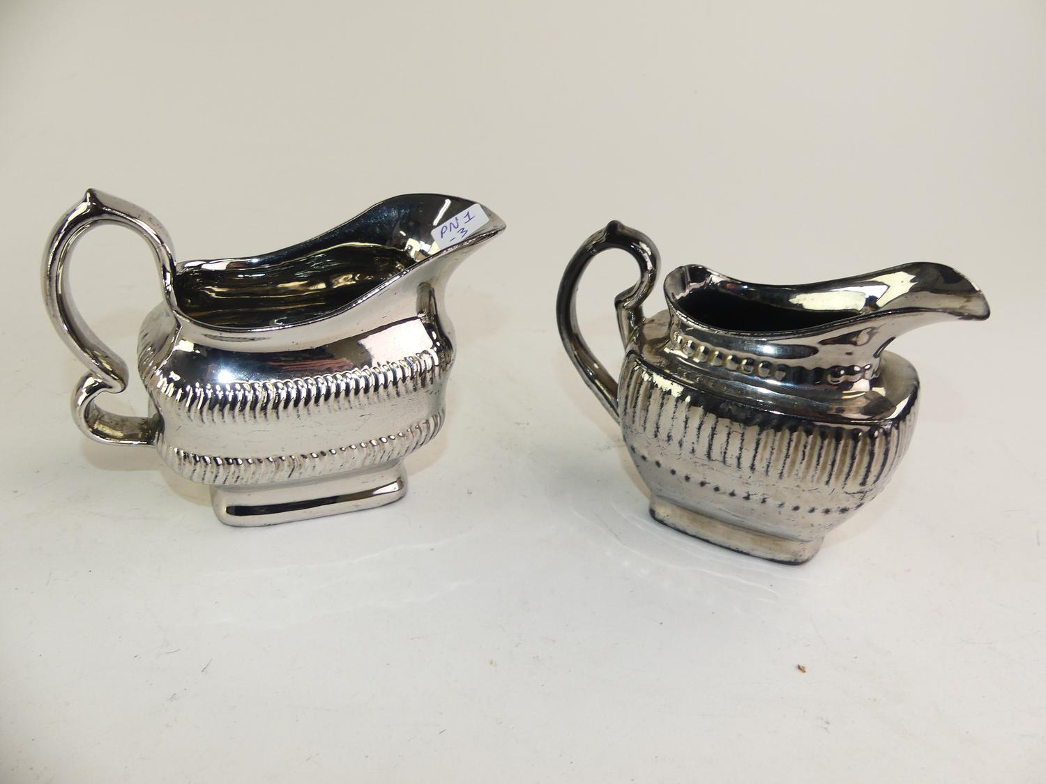 two antique silver lustre jugs
