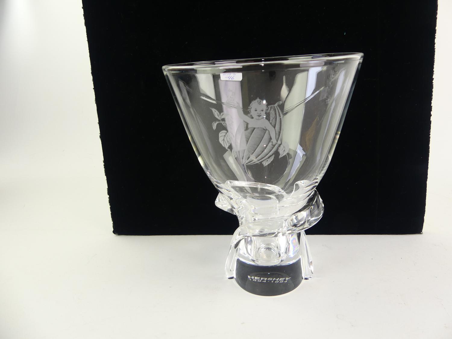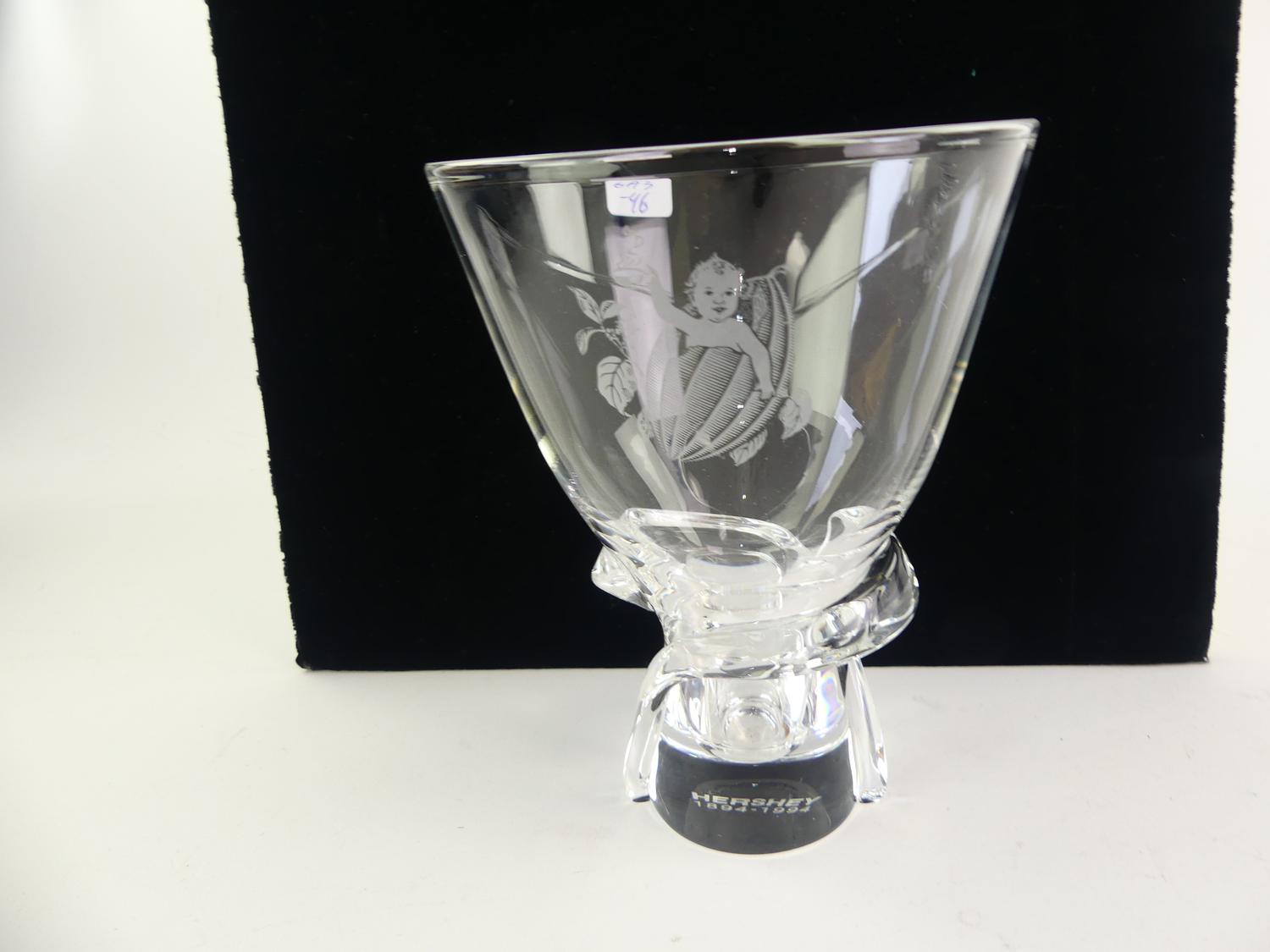 hersey's chocolate 1894-1994 centennial etched glass, ht. 6 1/2"
