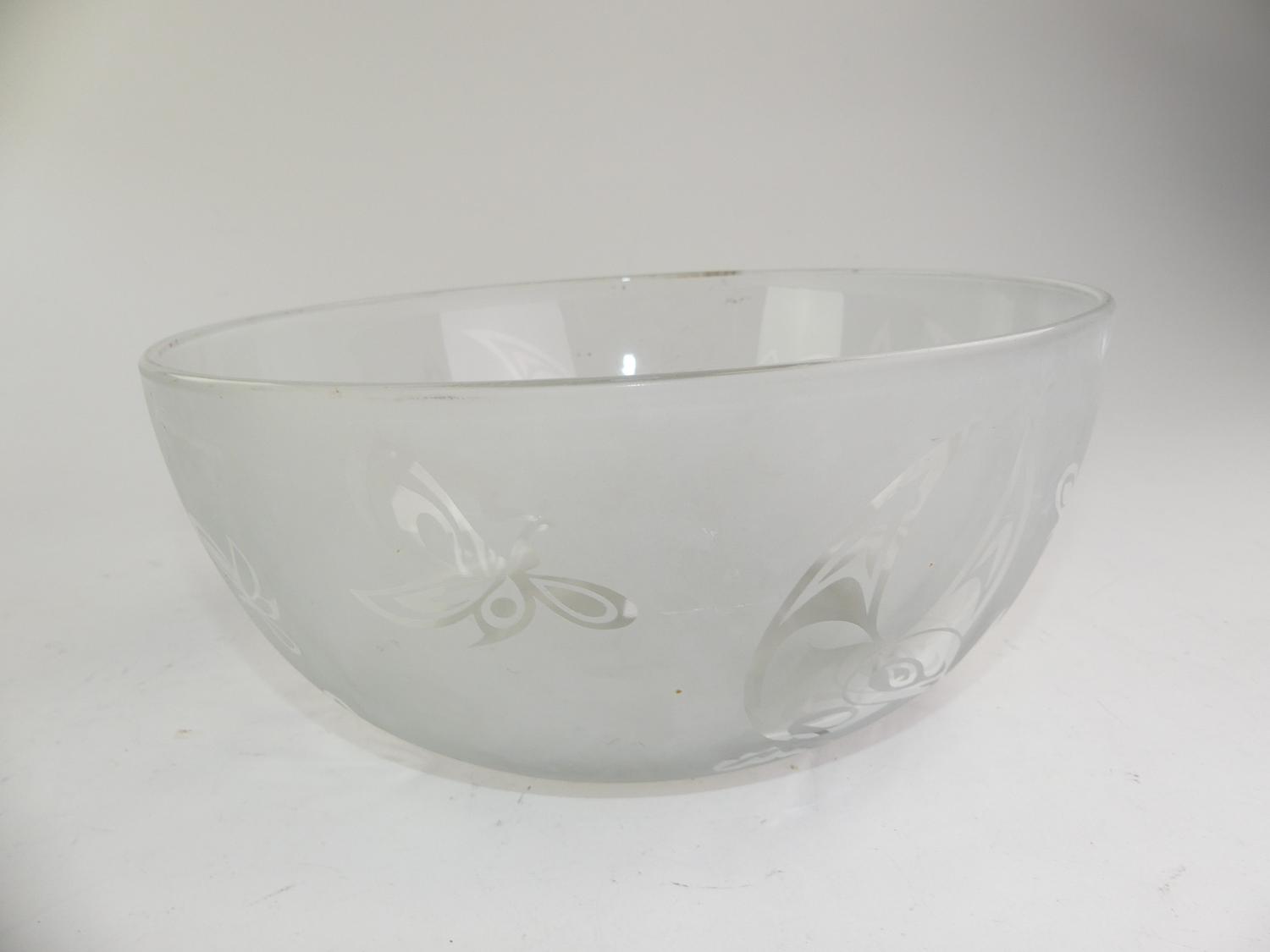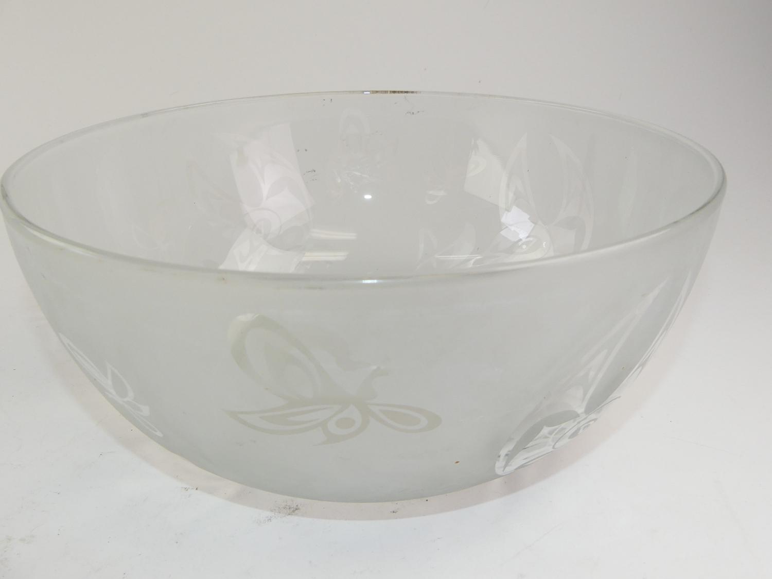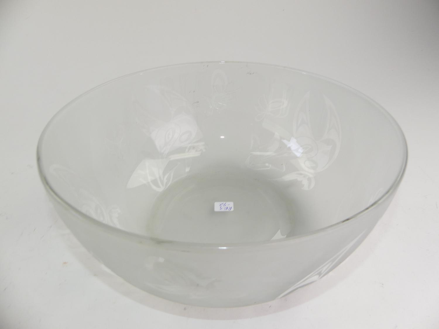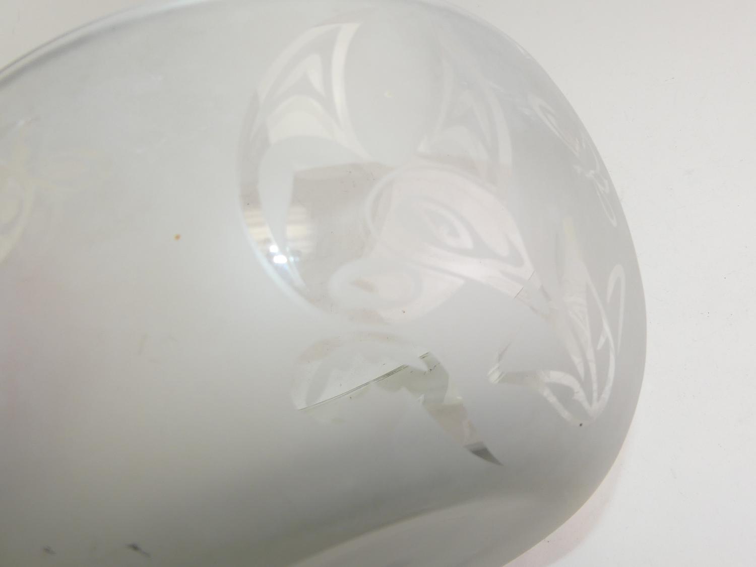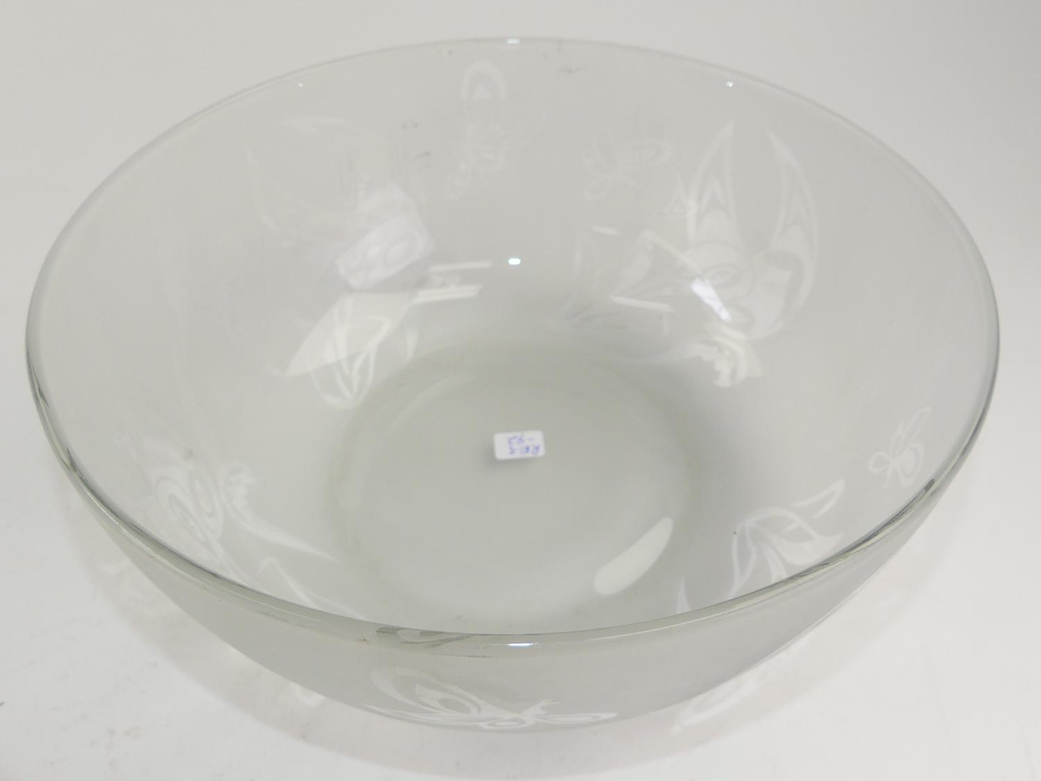 west coast native design etched glass bowl, 4 3/4" x 11"