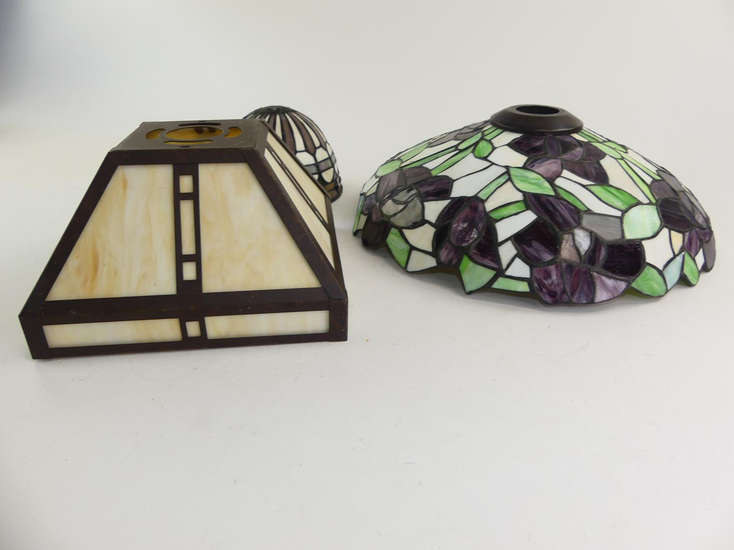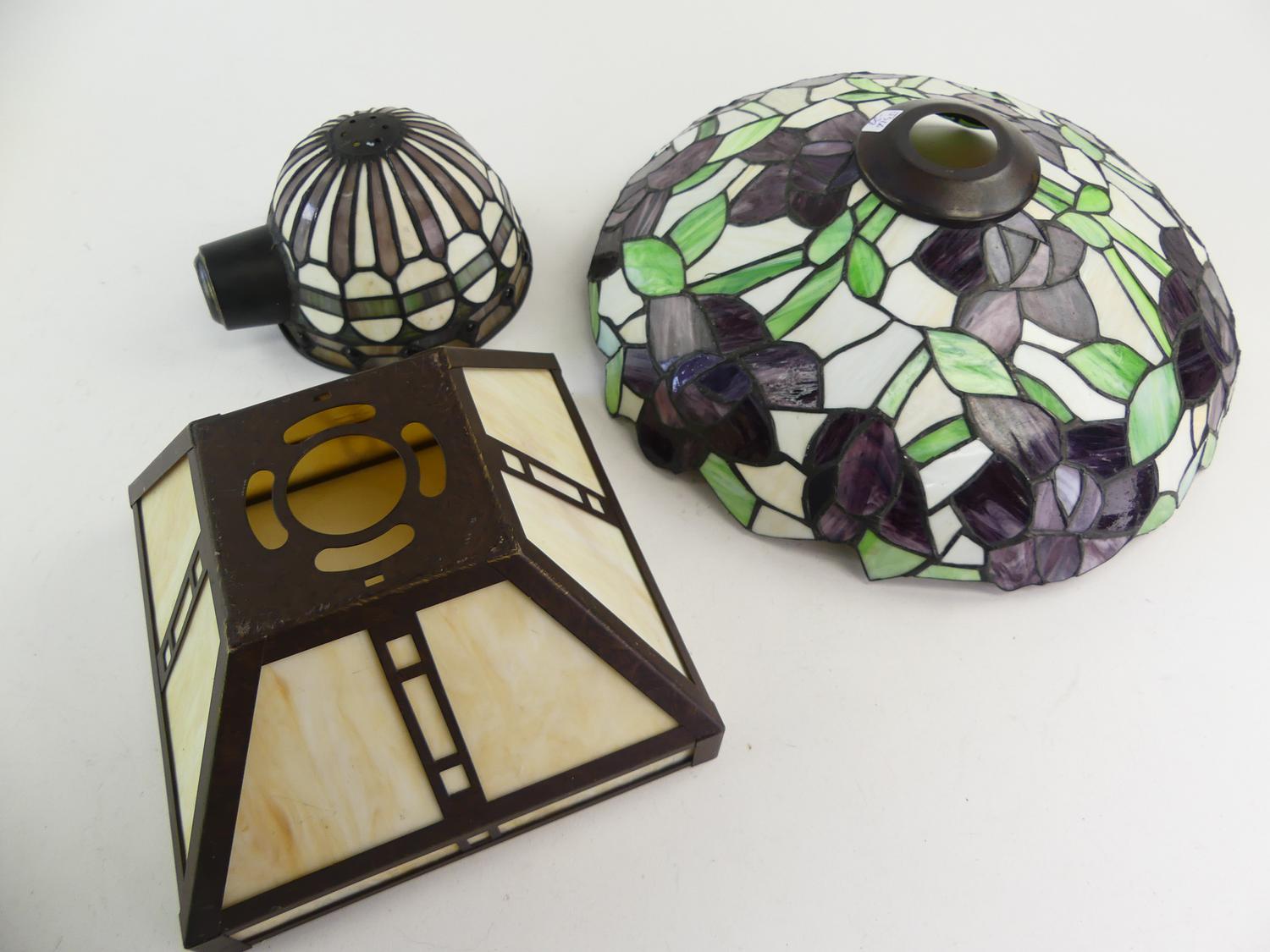 three tiffany style leaded glass shades