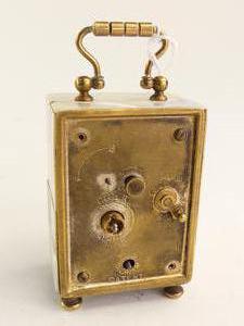 19th century mother-of-pearl and brass carriage clock, ht. 3 3/4"