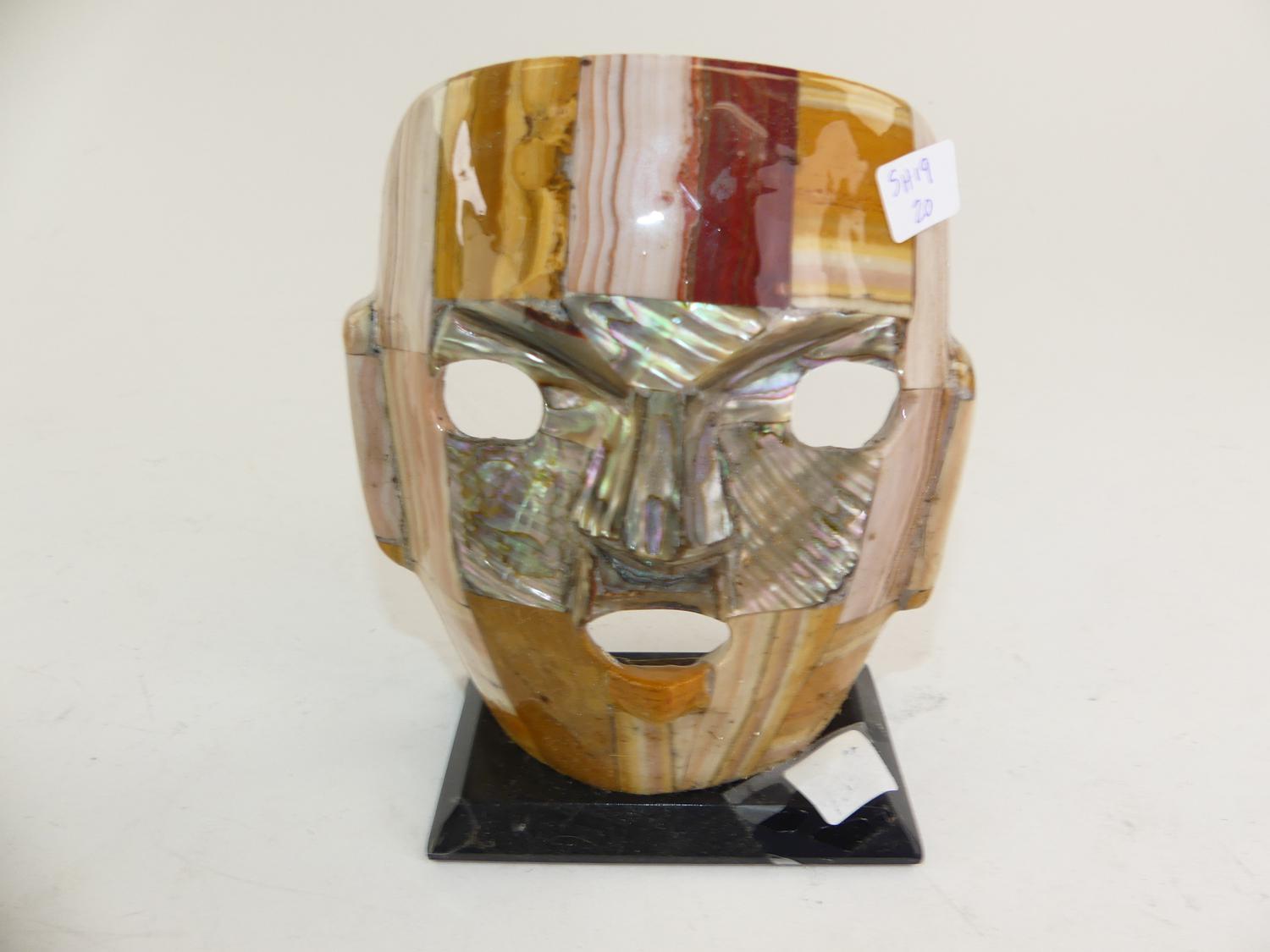 abalone inlaid mask, ht. 6 1/2"
