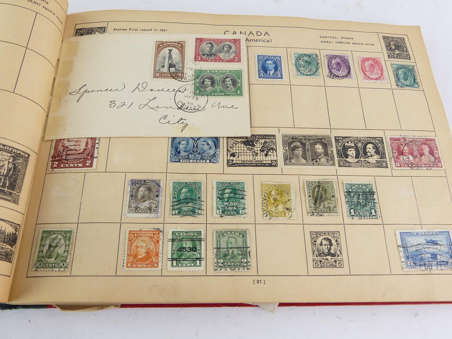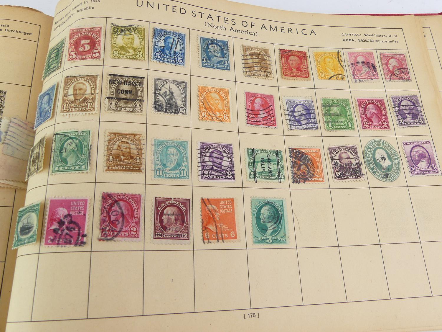 vintage postage stamp album with contents