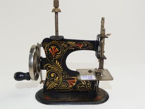 antique german tin toy sewing machine, 5 1/2" x 5 1/2"