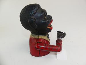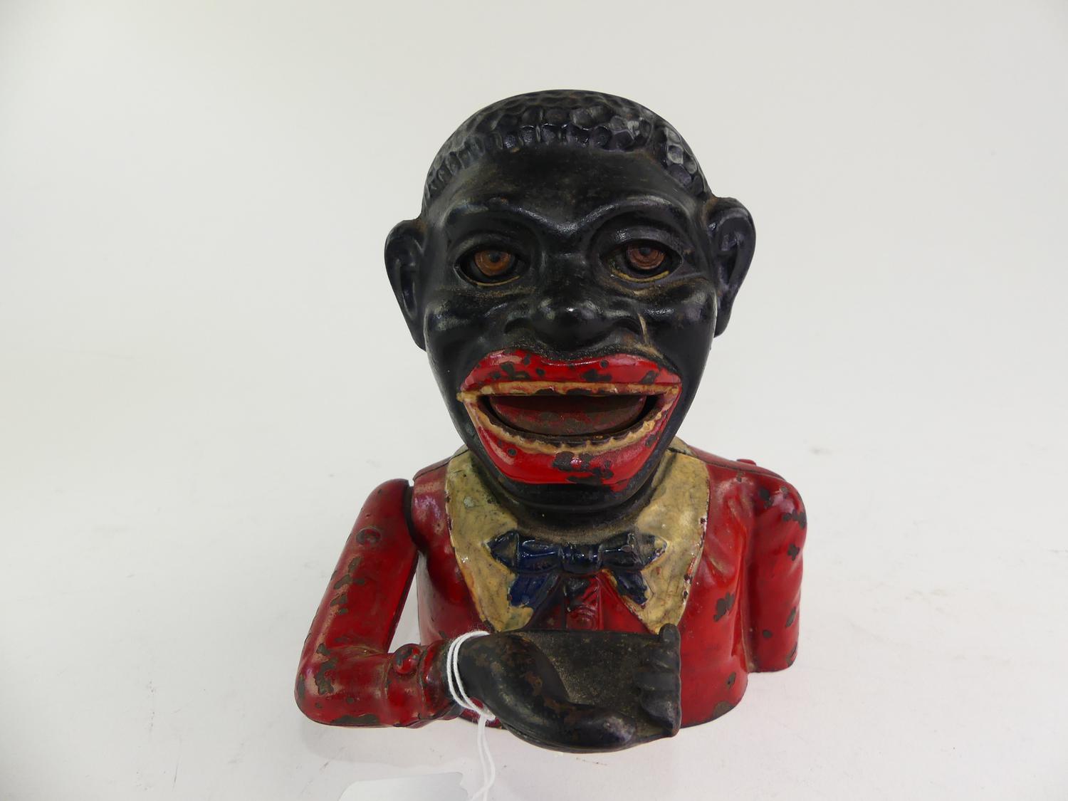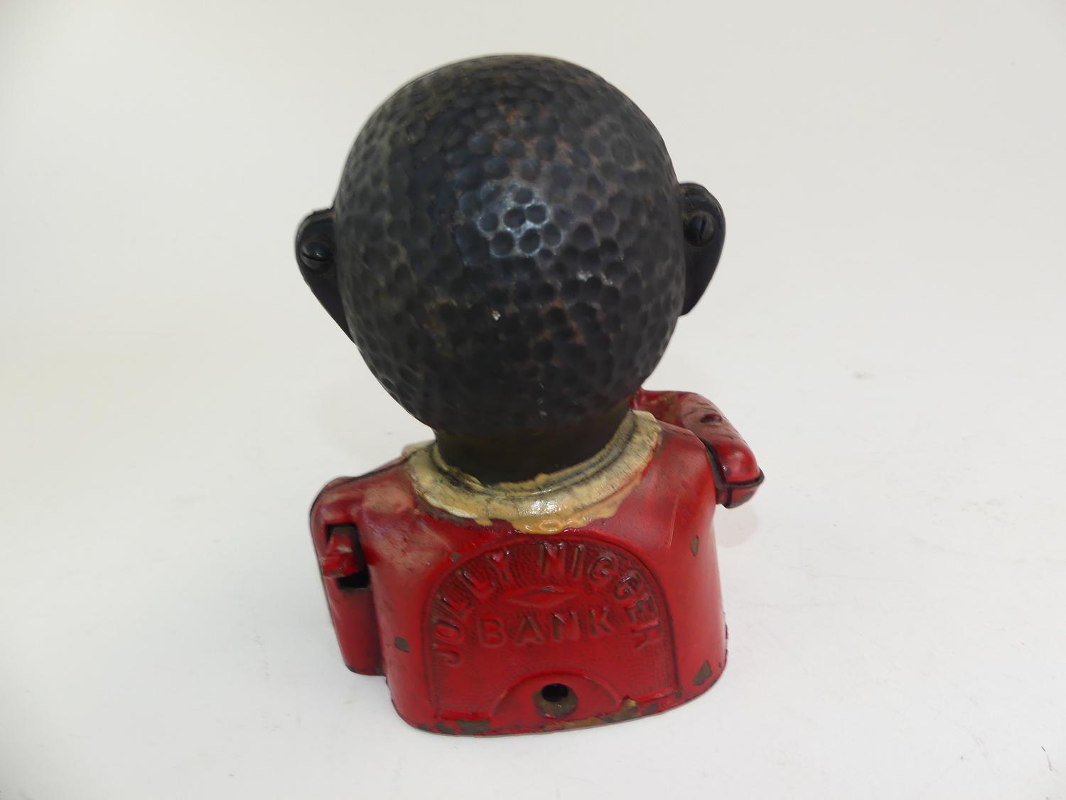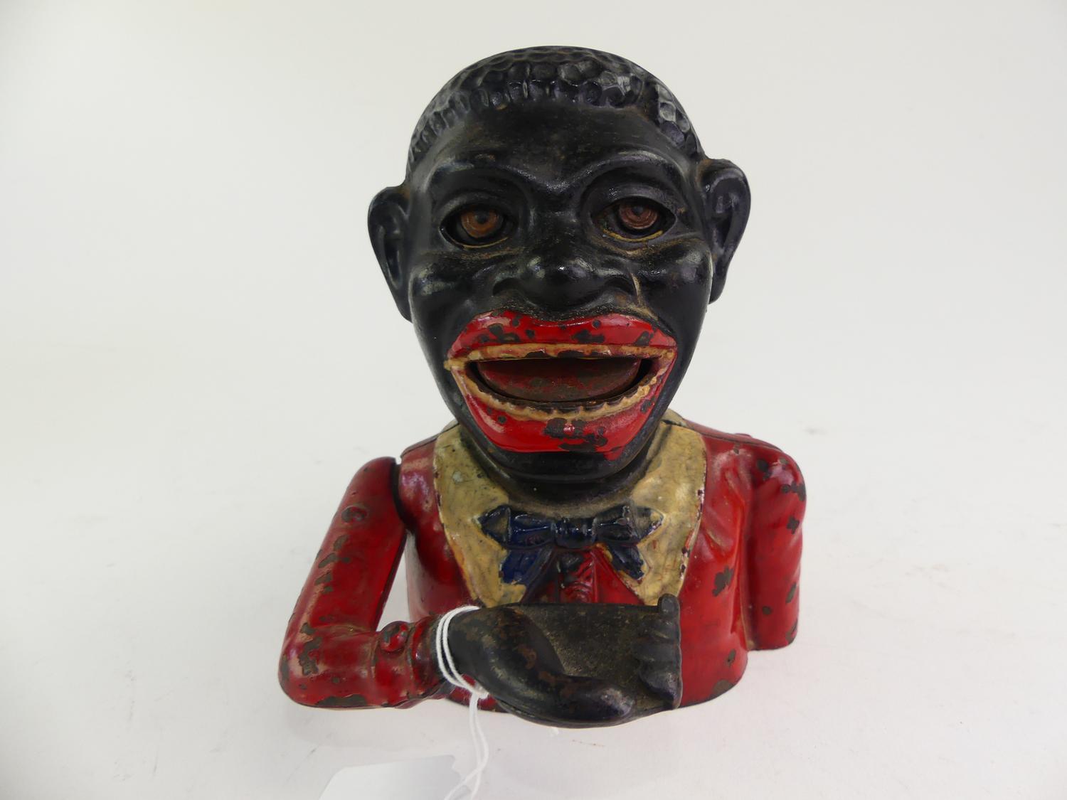 black americana - vintage cast iron "jolly ***** bank" penny bank