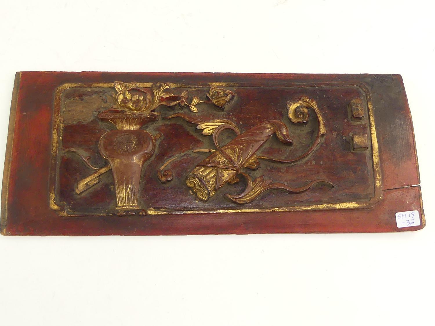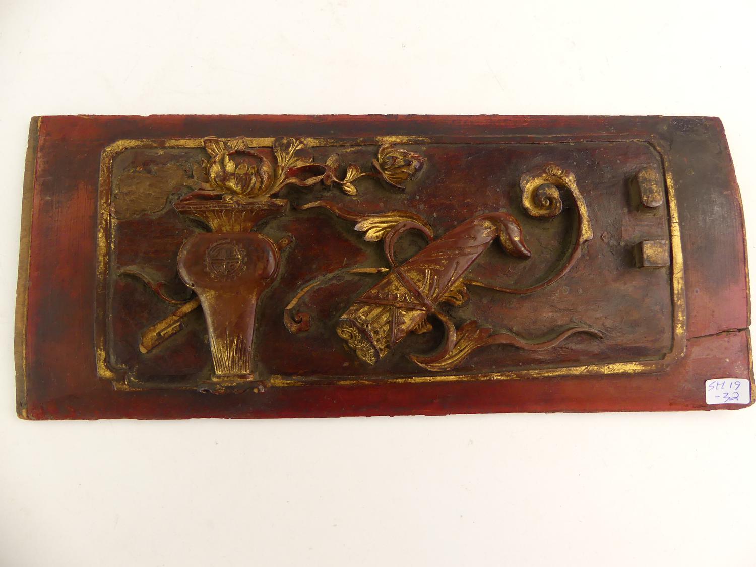 antique chinese lacquered and gilded carved freeze, 14" x 6"