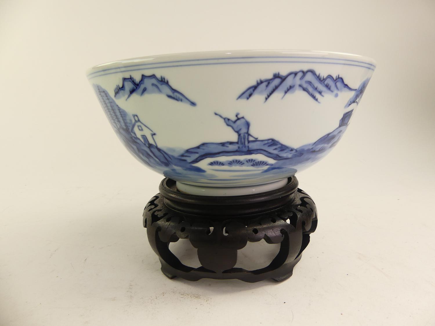 asian blue and white porcelain bowl on stand