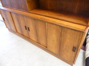 mid century danish rosewood side cabinet, 67" x 75" x 16 1/2"