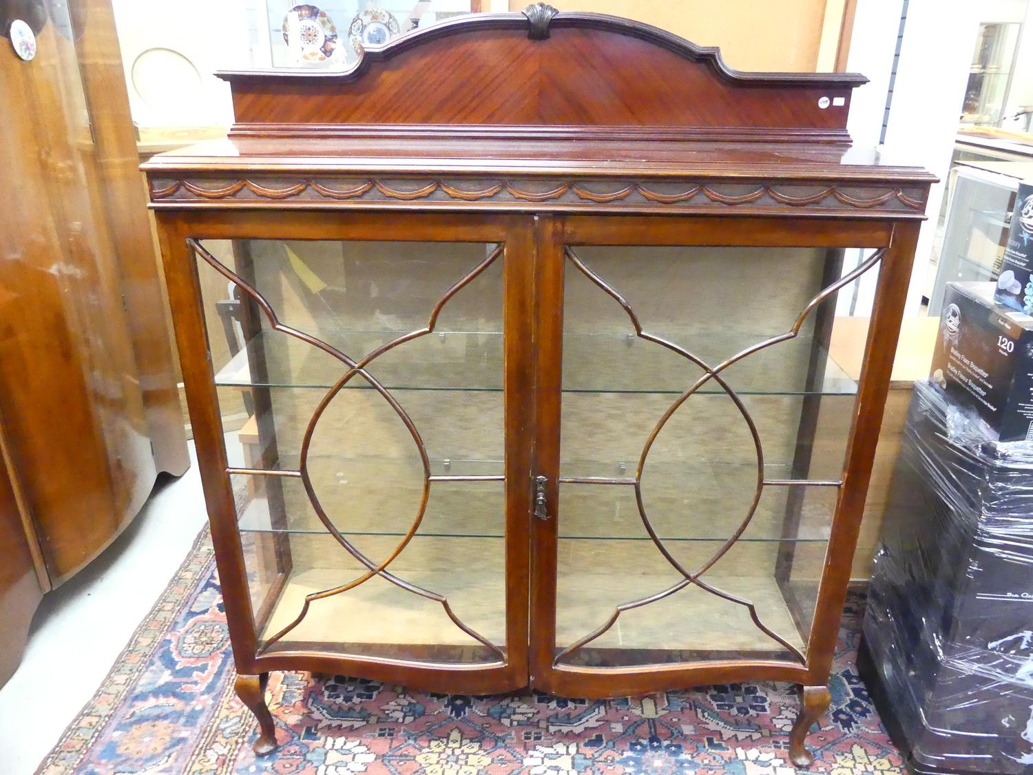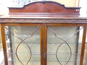 edwardian mahogany curio cabinet, 60" x 48 x 14"