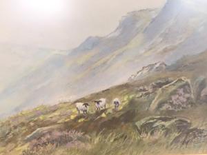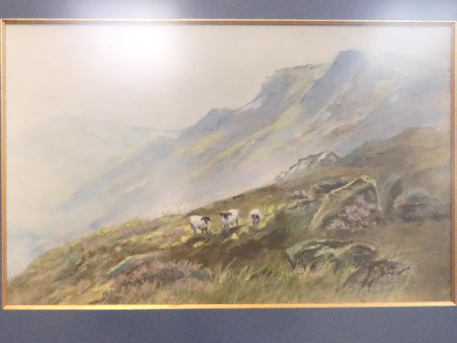 early 20th century scottish school watercolour, 12" x 18", "highland landscape with sheep"