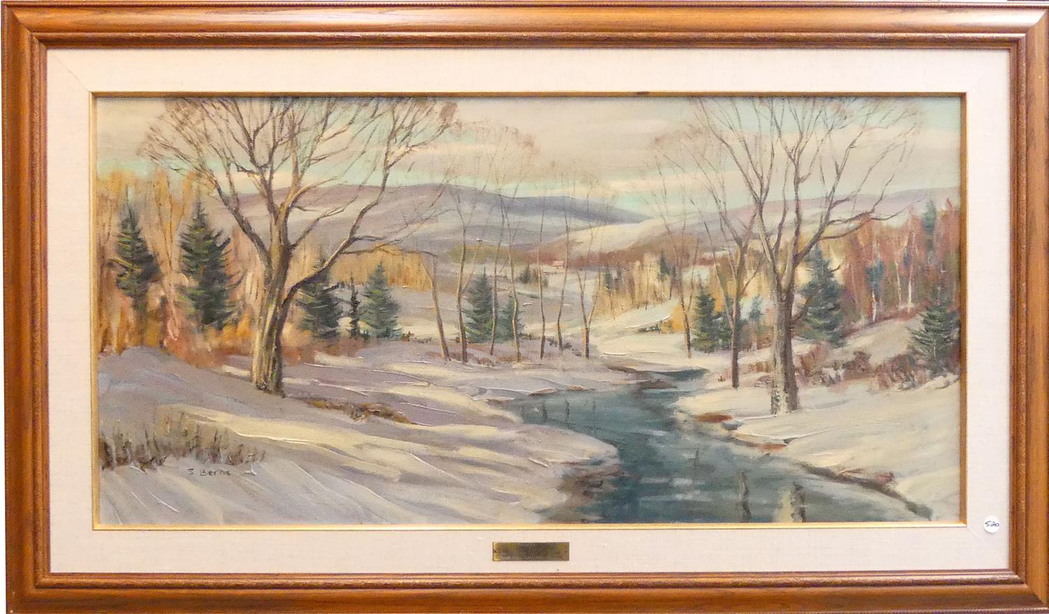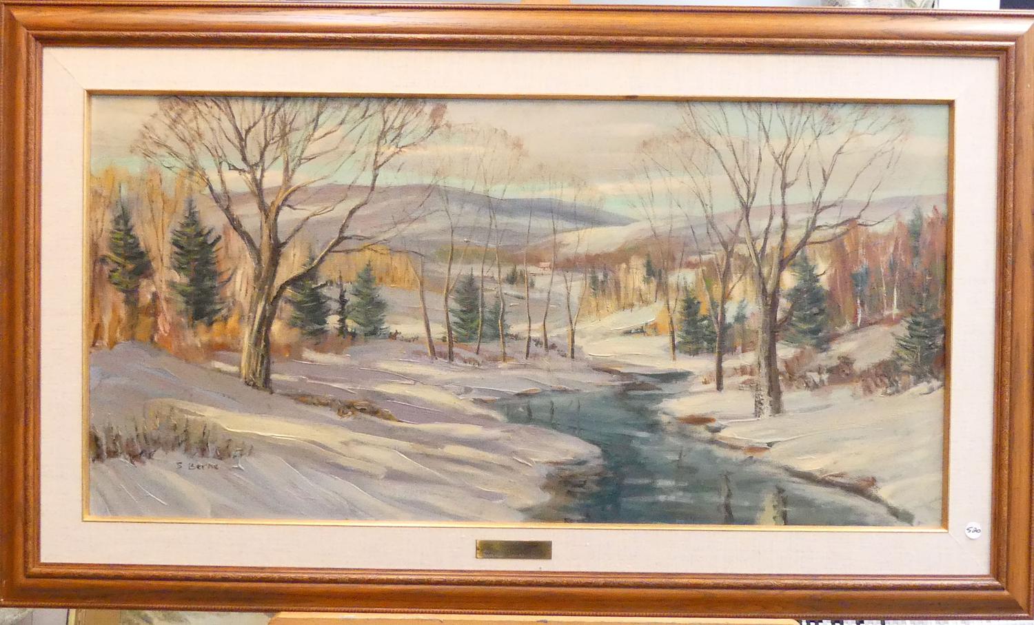 sydney berne (b.1921), oil on canvas, 20" x 40", "winter landscape"