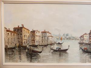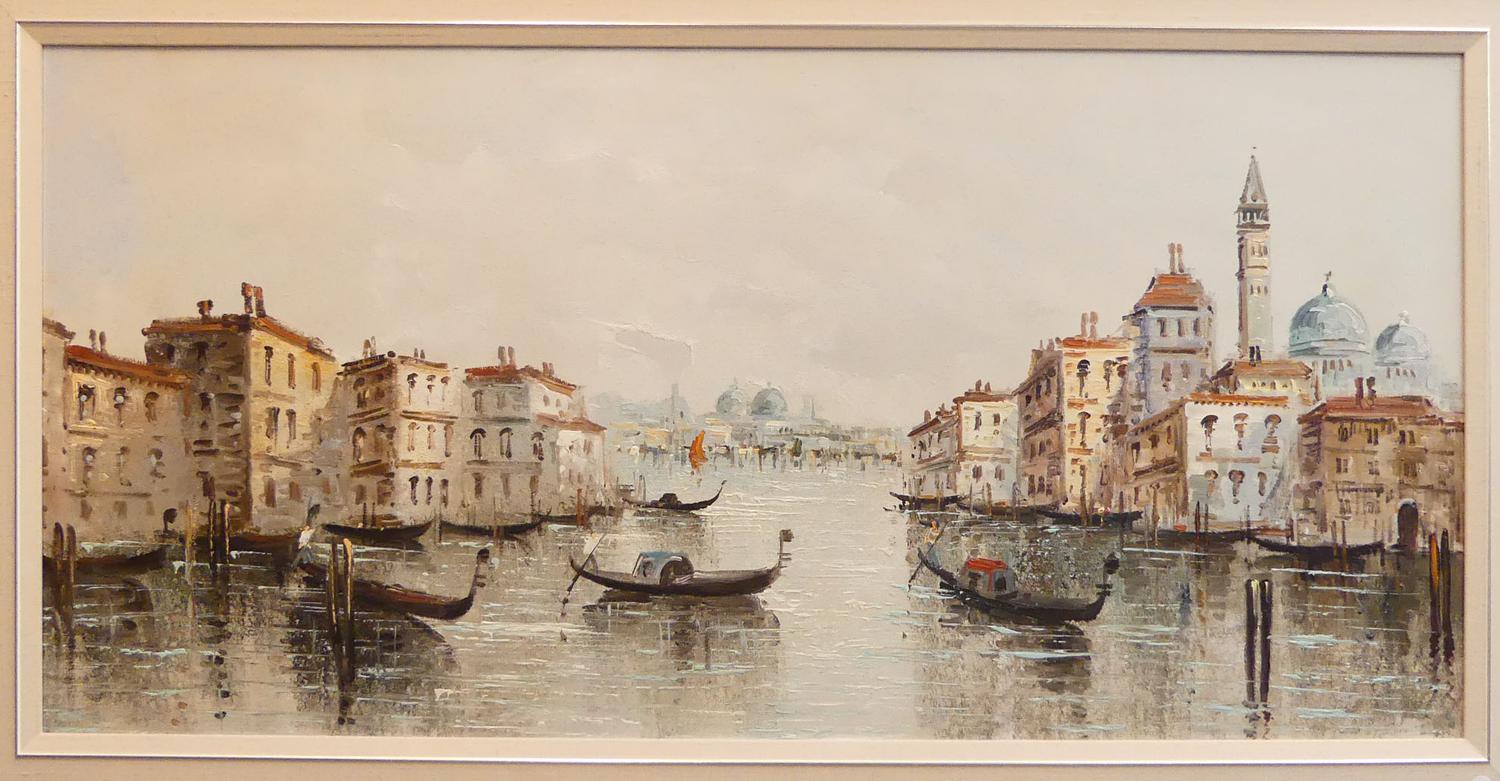 antonio devity (1901-1993), oil on canvas, 24" x 48", "venice scene"