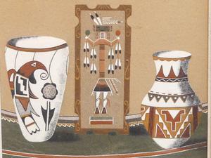 navajo sand painting by sue ben jr., 16" x 16", "lueshill pottery"