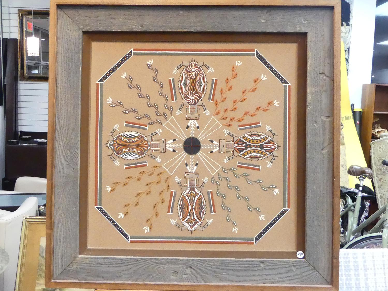 navajo sand painting by nelson lewis, 24" x 24", " water creature"