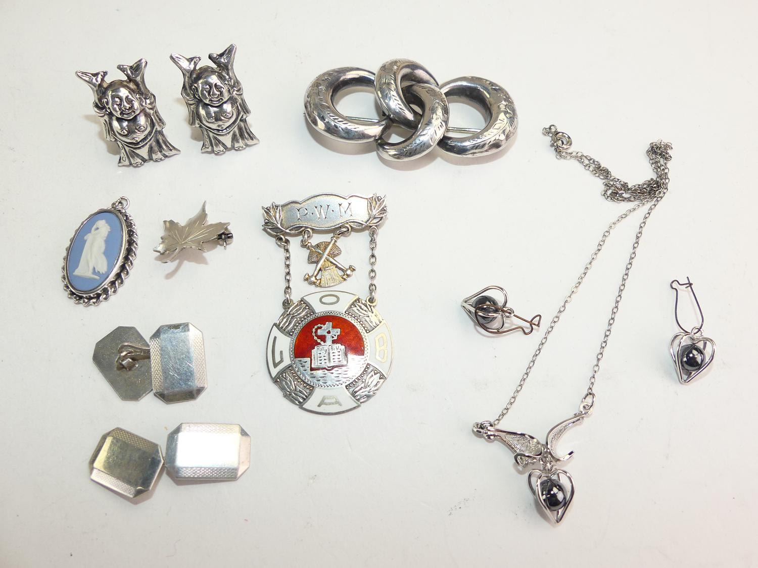 lot of sterling silver jewelery including victorian knot brooch, 41.52 grams