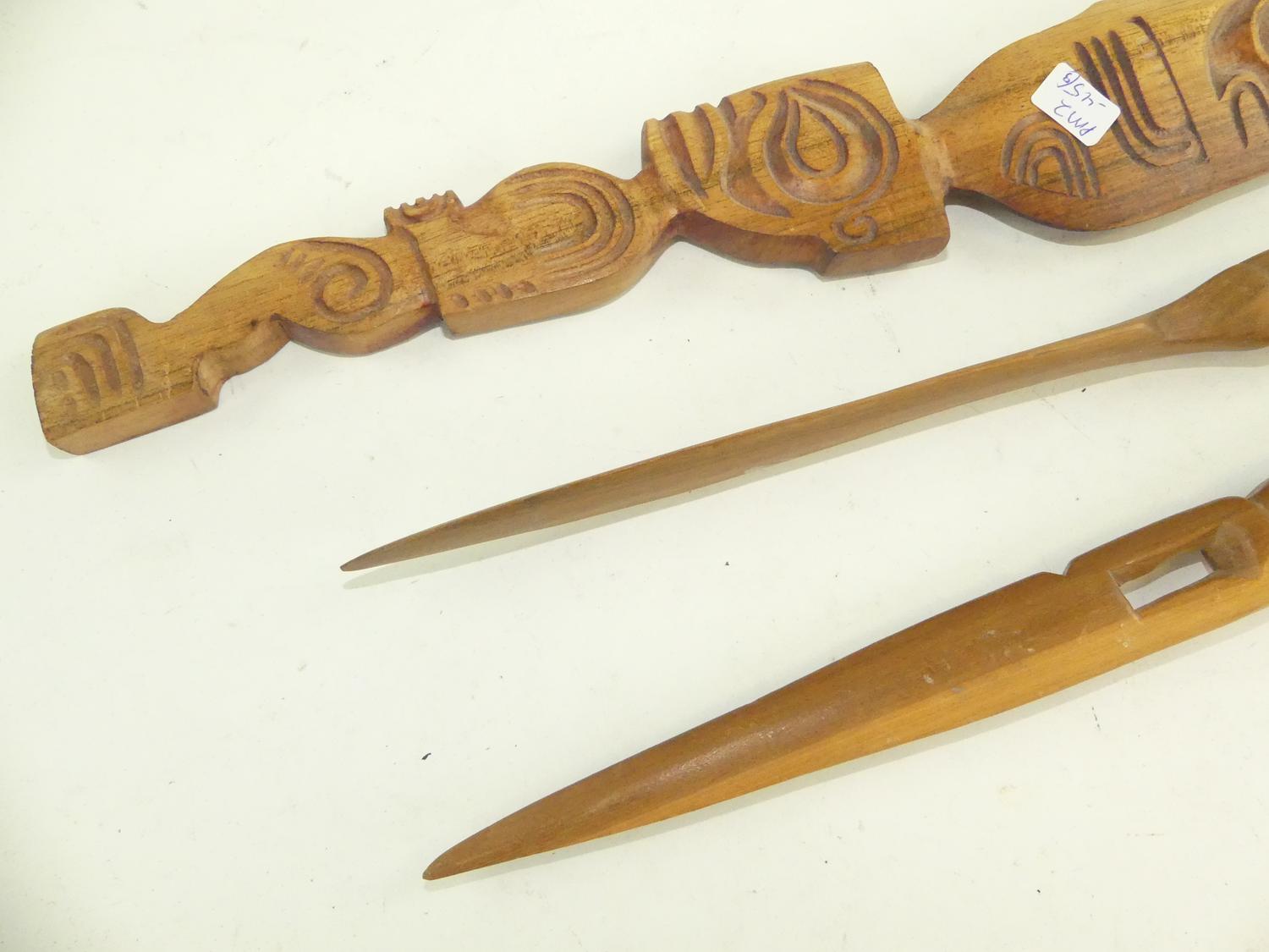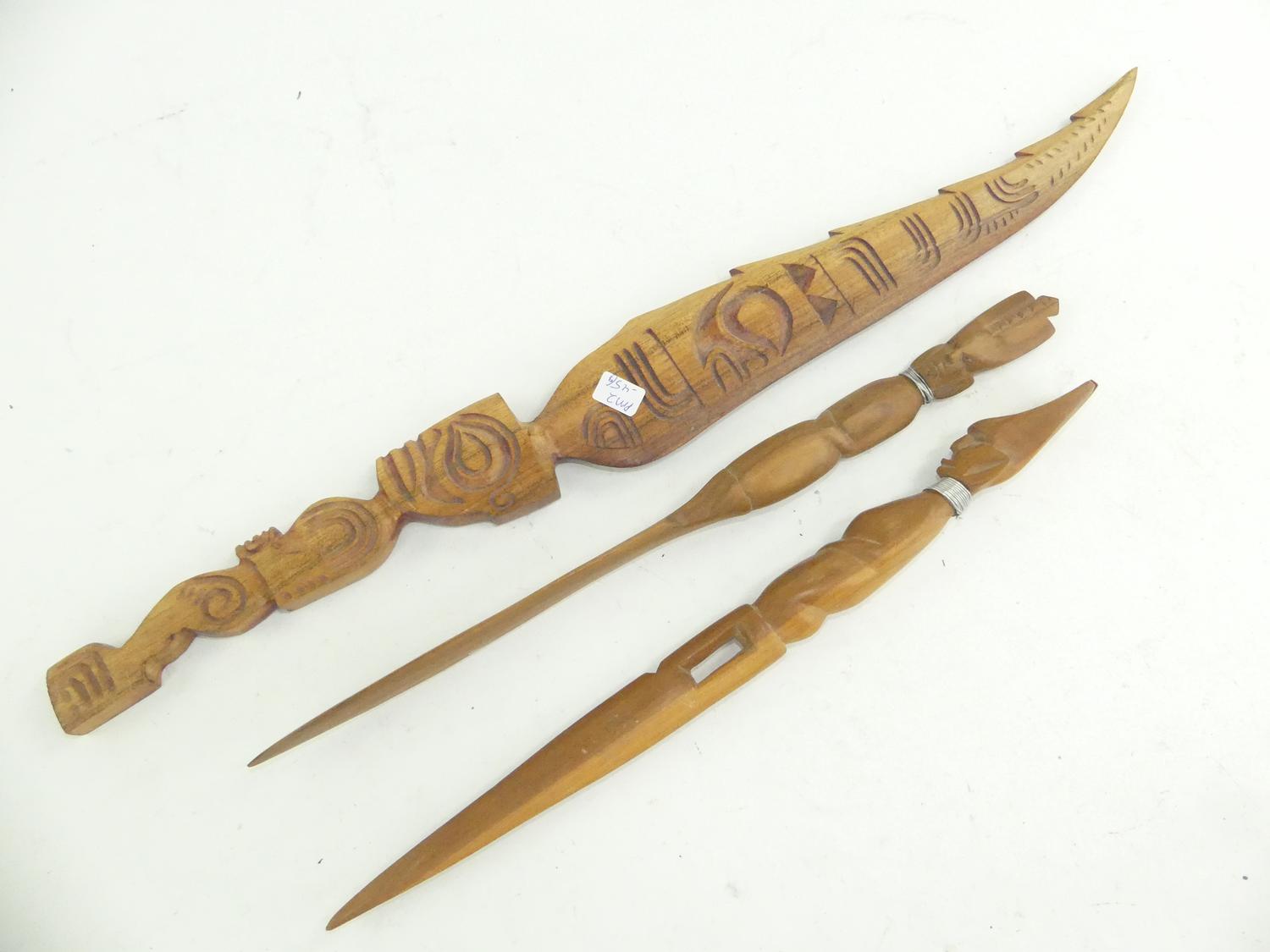 3 curved wooden knives, 21"