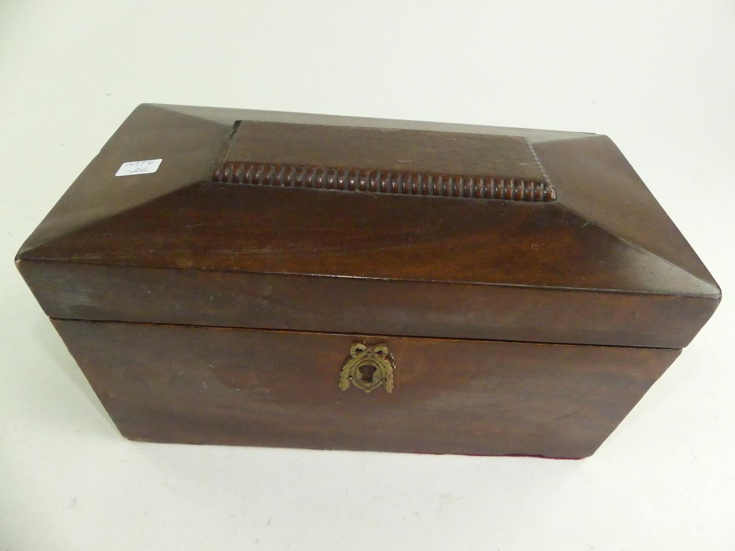 victorian mahogany tea caddy, 6" x 11" x 6"