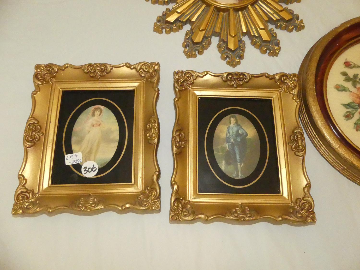 four gilt framed items
