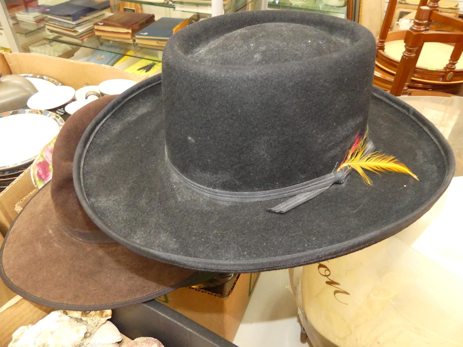 lot of men's hats - including "the buckaroo" by tom cambell, calgary alberta