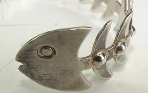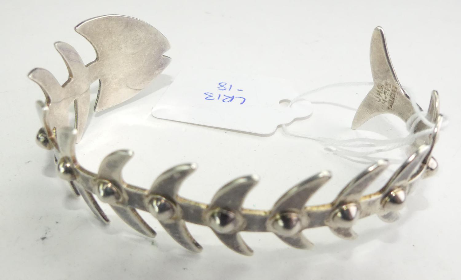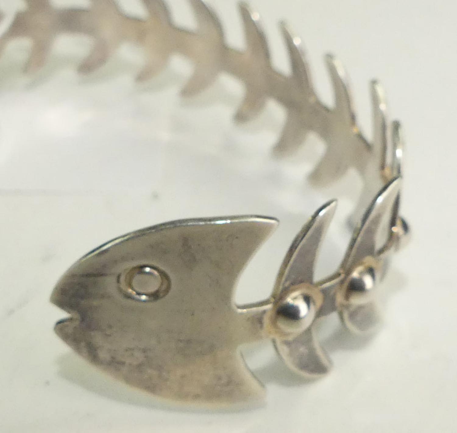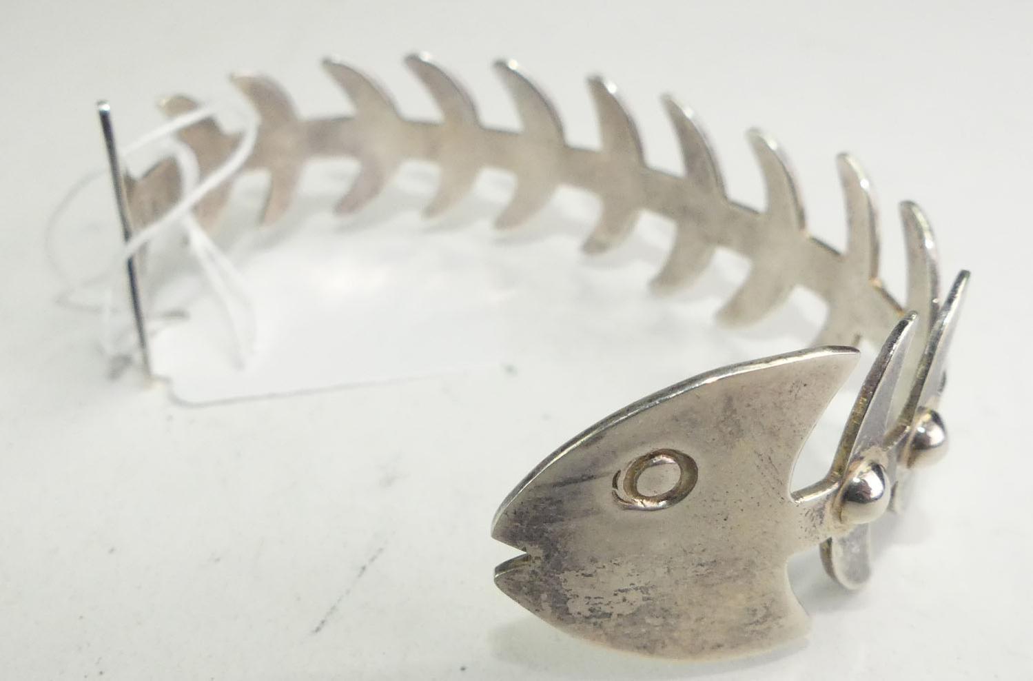 vintage mexican sterling taxco fish spine bangle, hallmarked, weighing approx 28 grams