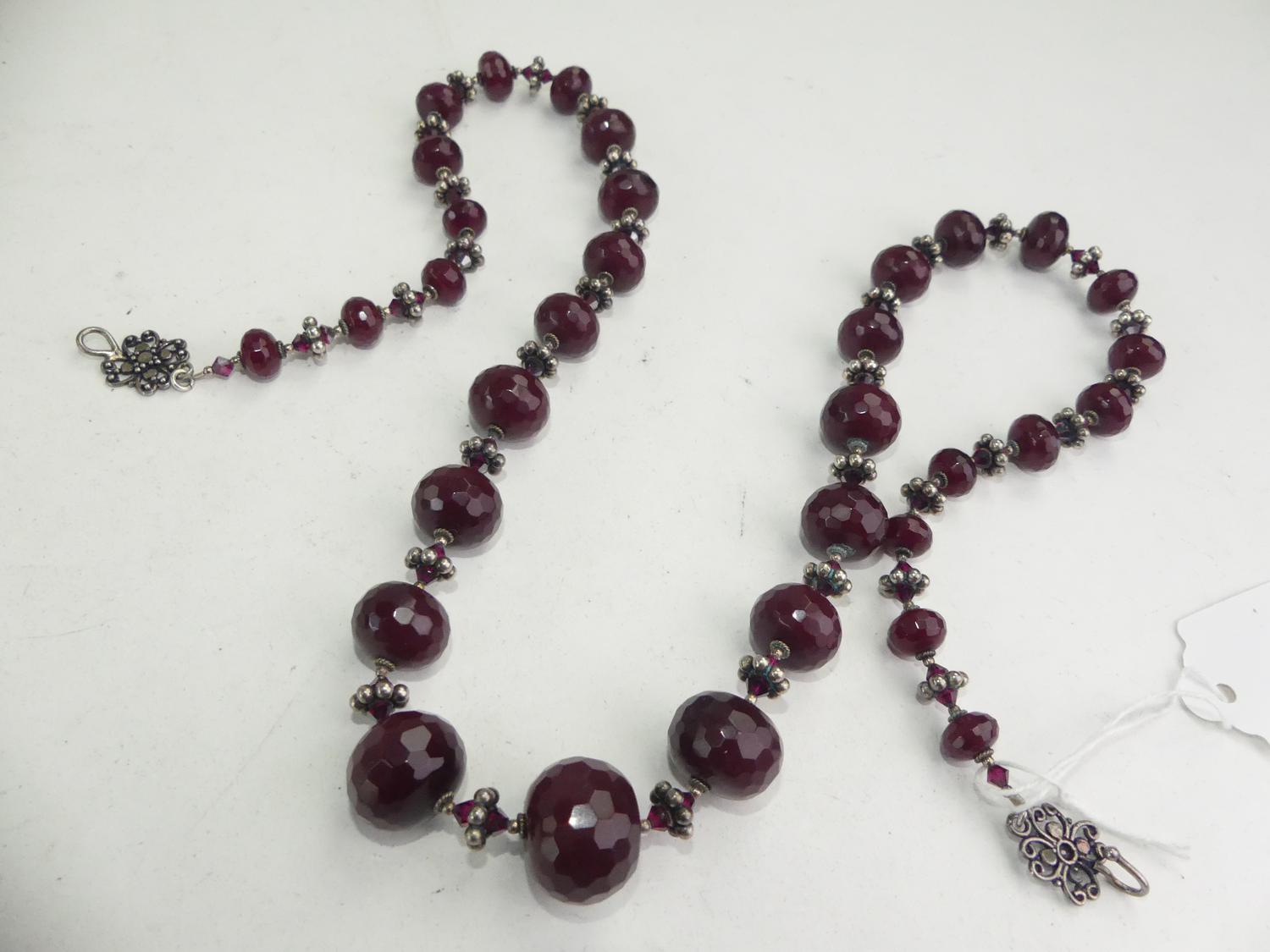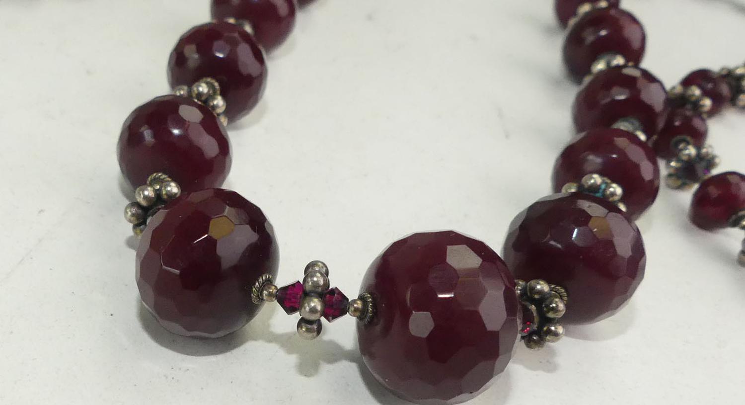 sterling silver ruby (reconstituted) bead necklace, length 30"