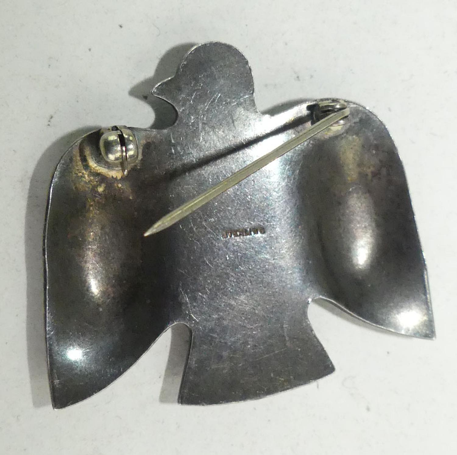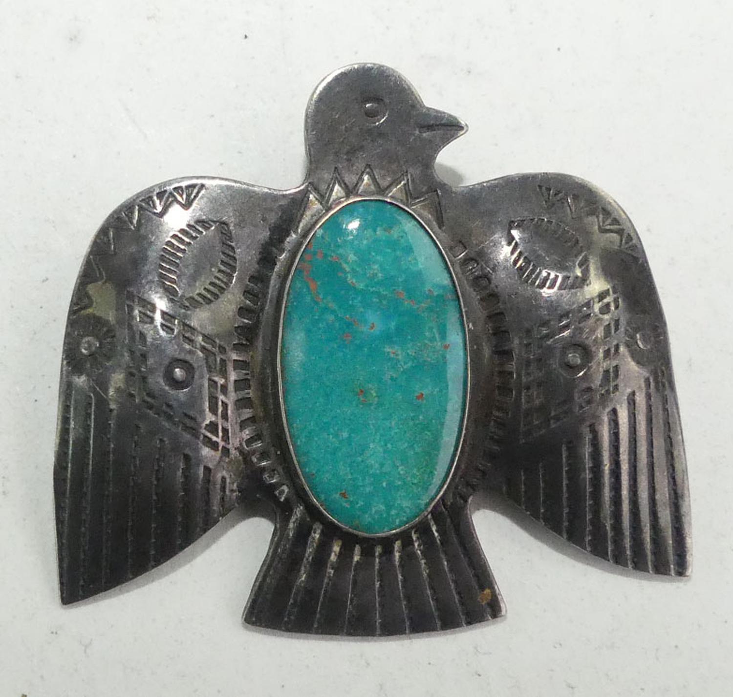 navajo sterling turquoise bird brooch, 1 5/8" x 1 3/8"