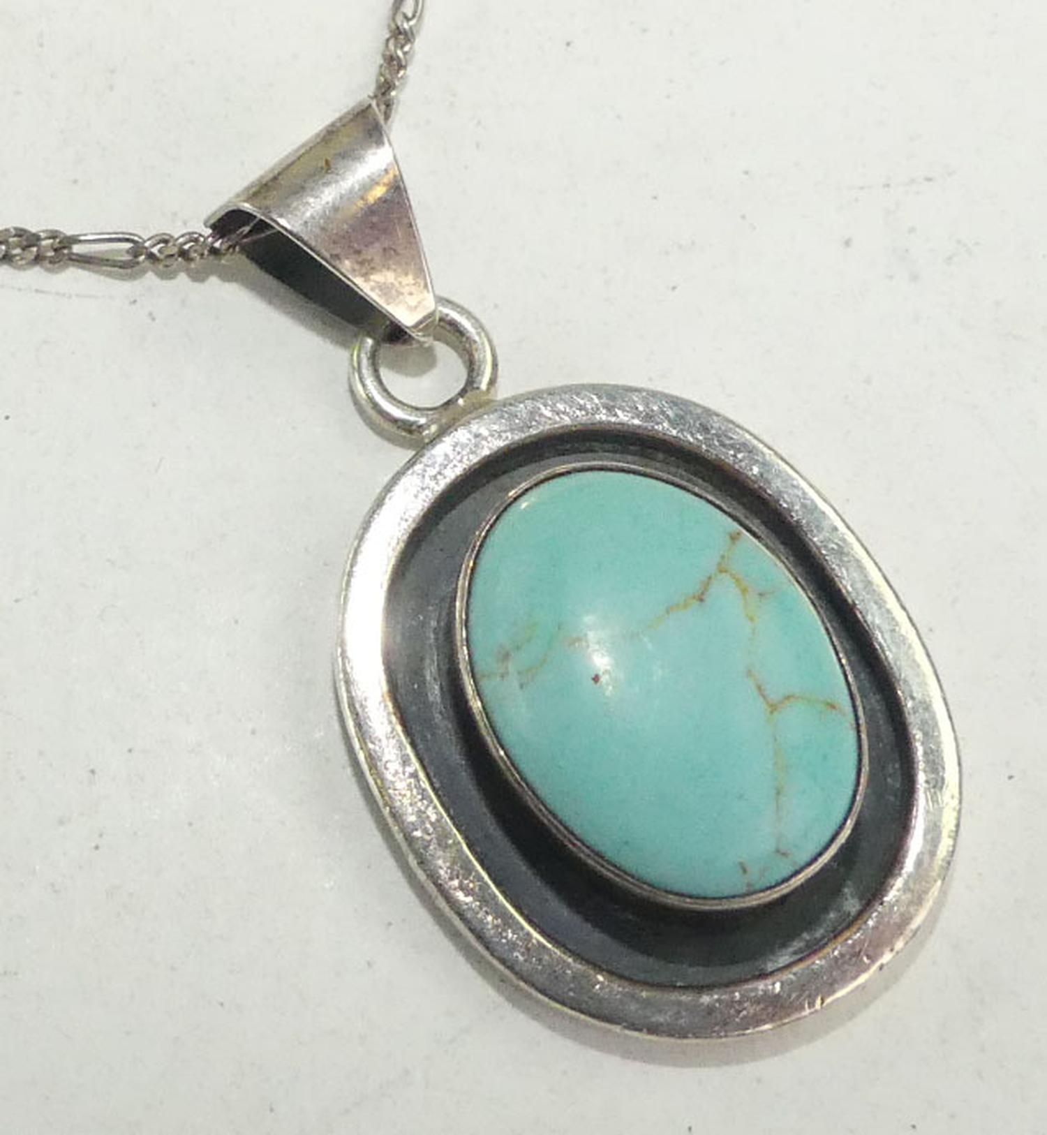 vintage sterling silver turquoise pendant necklace, length 18", weighing approx 16 grams