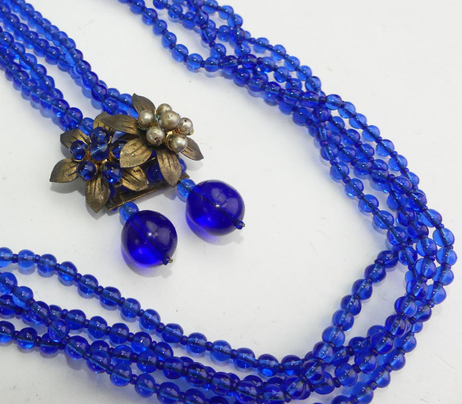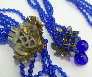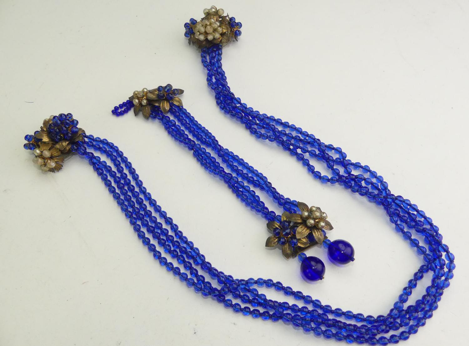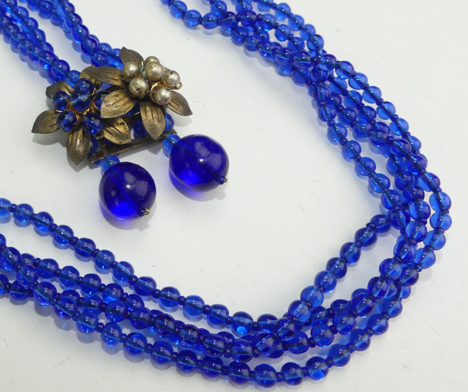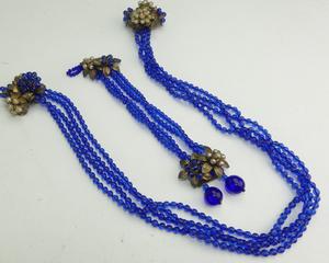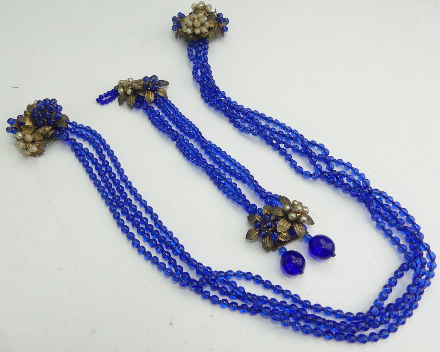 early unsigned miriam haskell cobalt blue dress clips and bracelet, as is