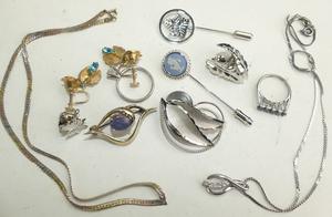 lot of sterling silver jewelerly, including sapphire ring, 388.5 grams