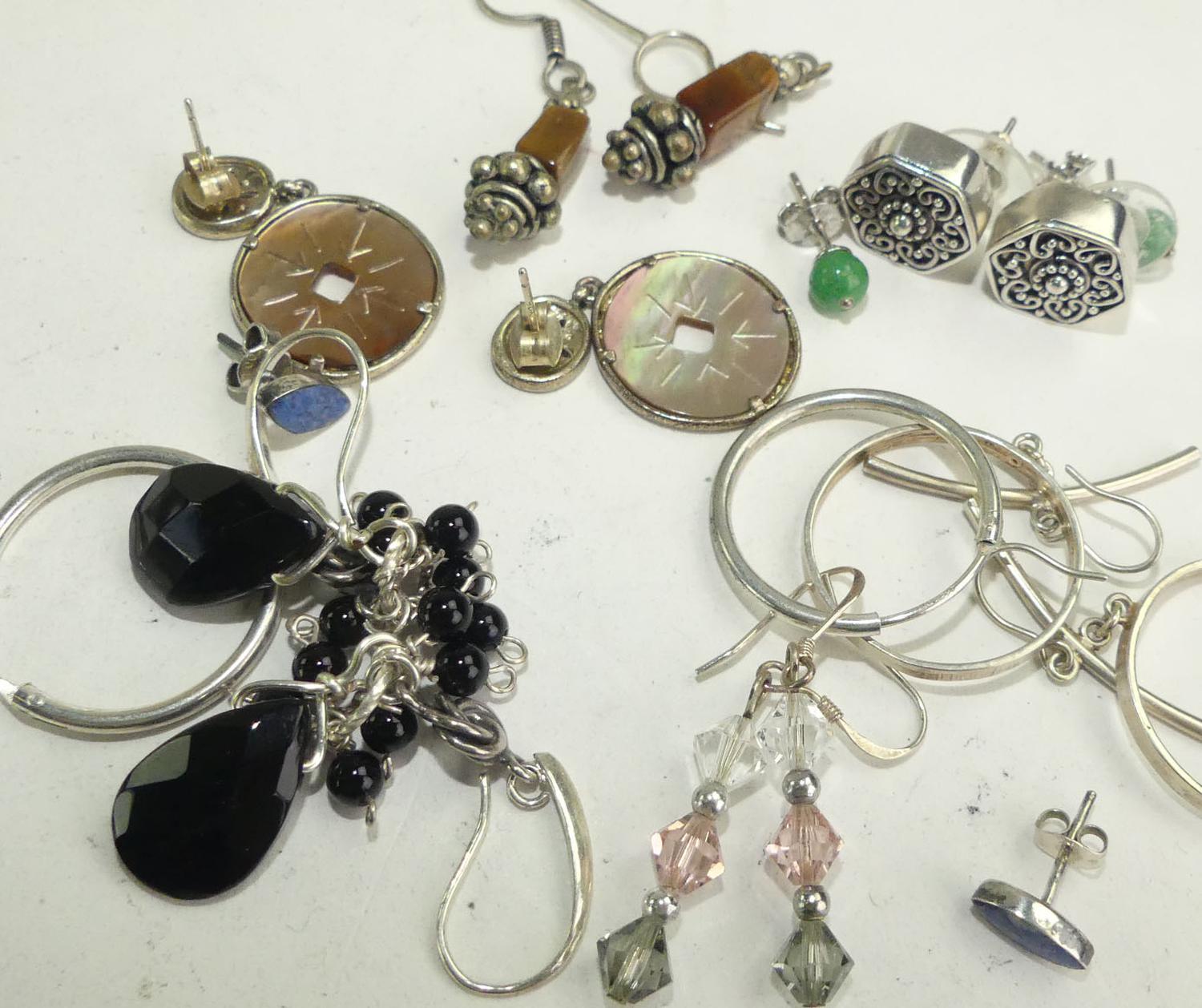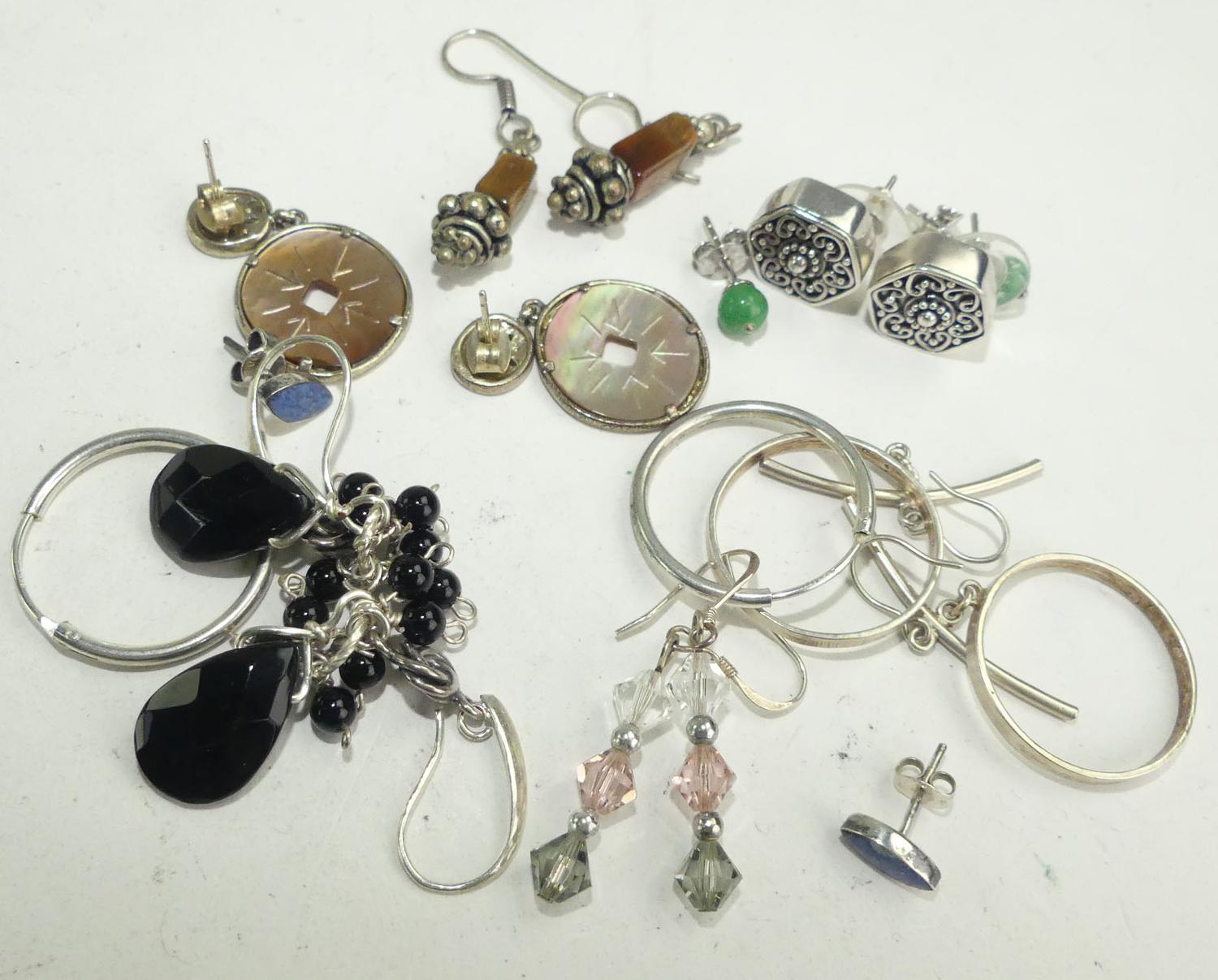 lot of sterling silver earrings with gemstones, w/a 34 grams