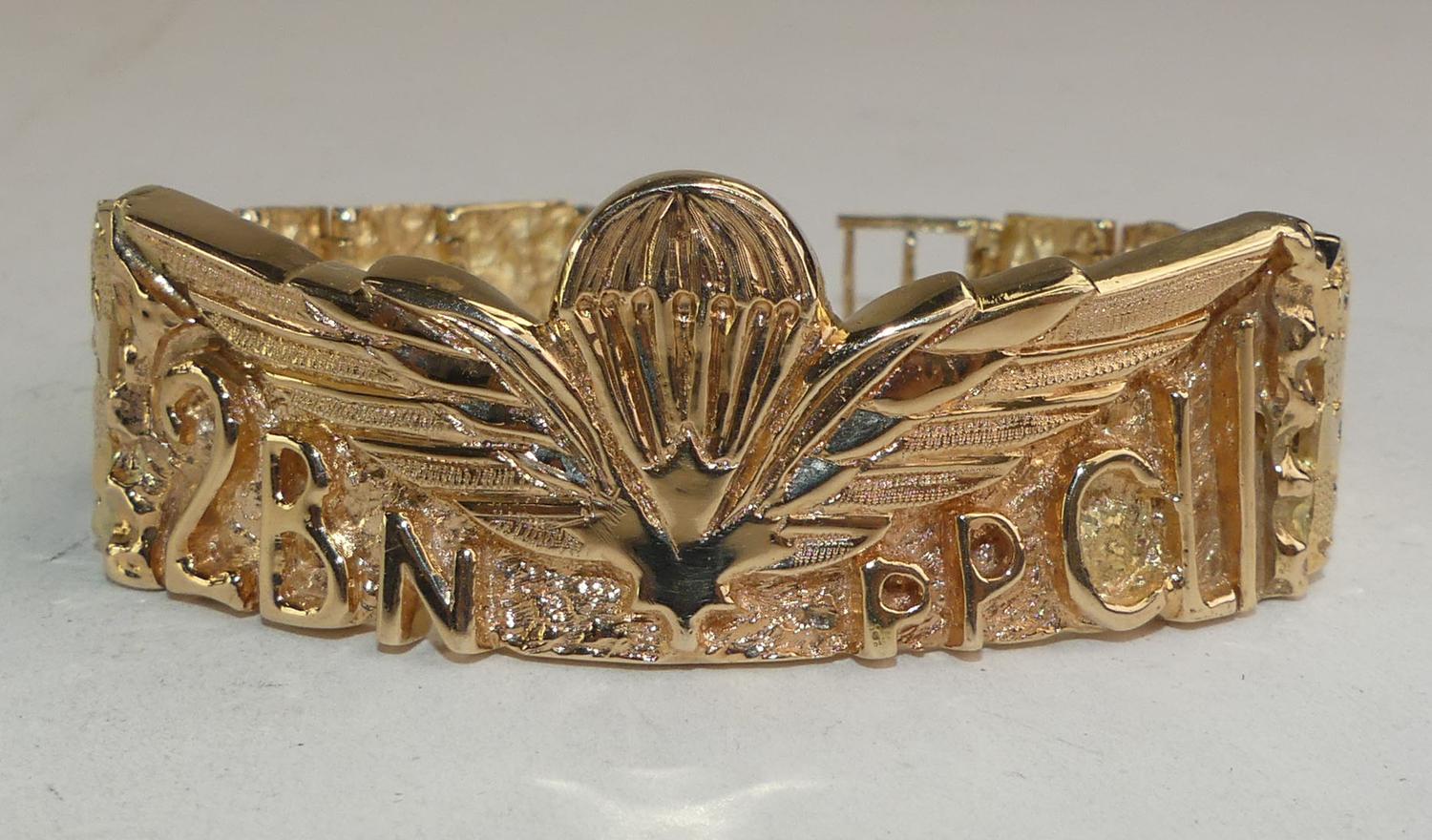 14k rose gold "2nd battalion princess patricia's canadian light infantry" custom bracelet, length 8 1/2", 54 grams