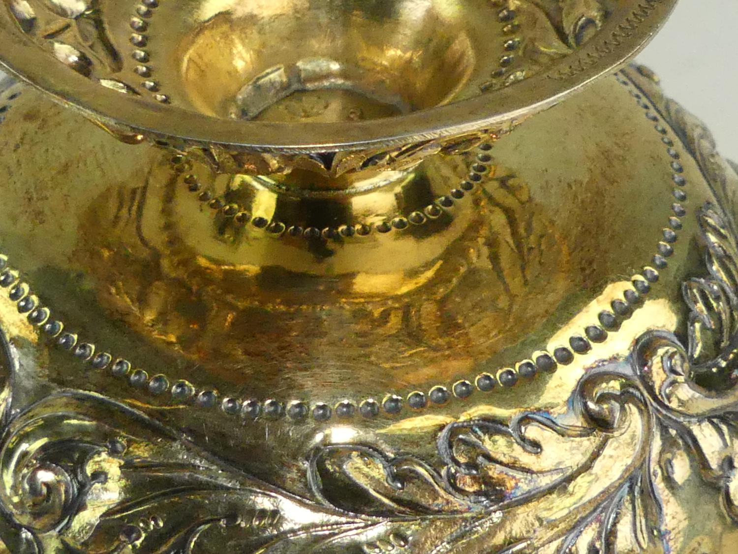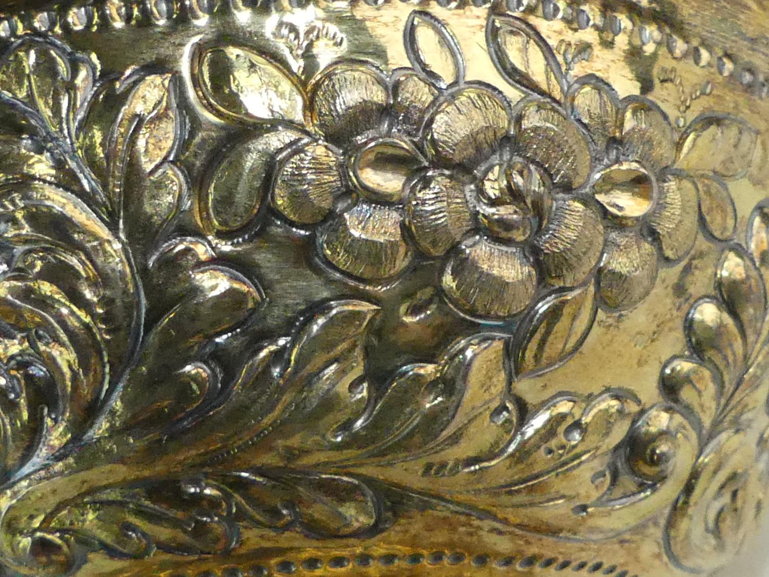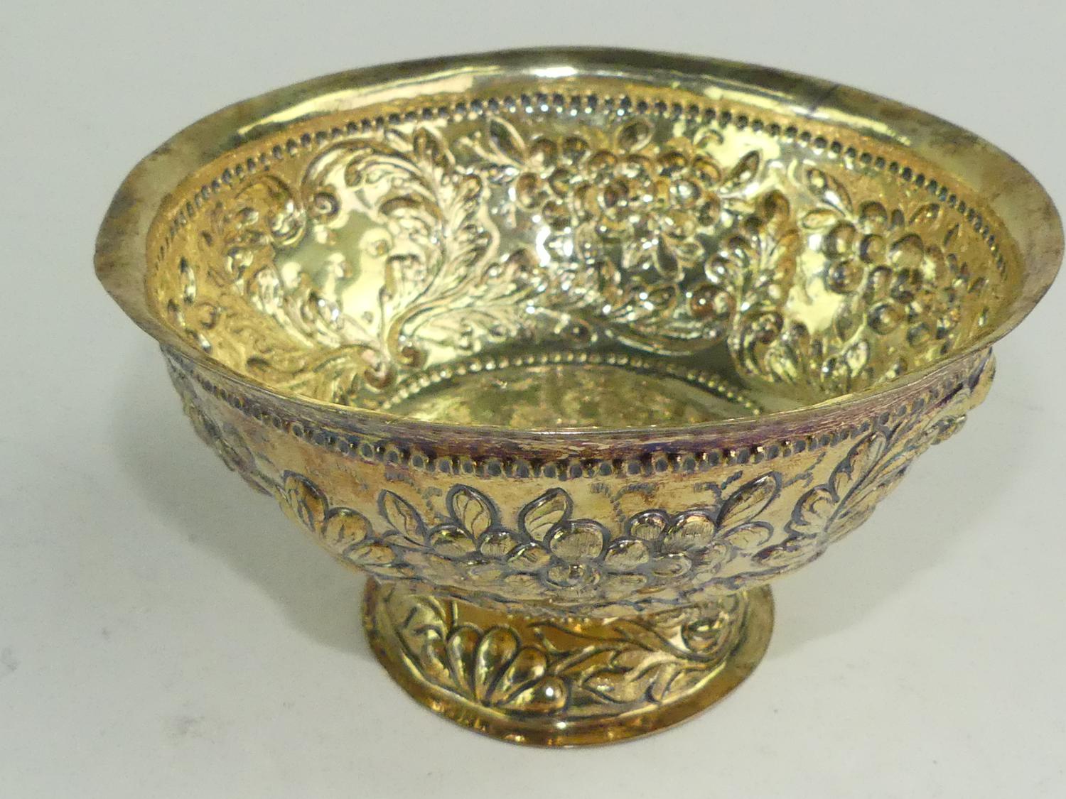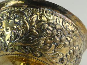 early 18th century german silver gilt repousse brandy bowl, 3" x 5 1/4", 161 grams - from the ross estate, butchart gardens, victoria bc