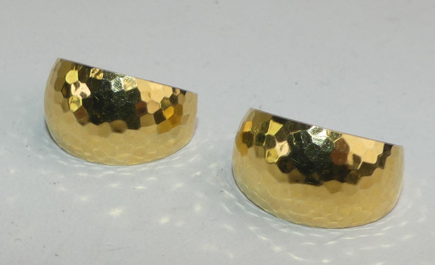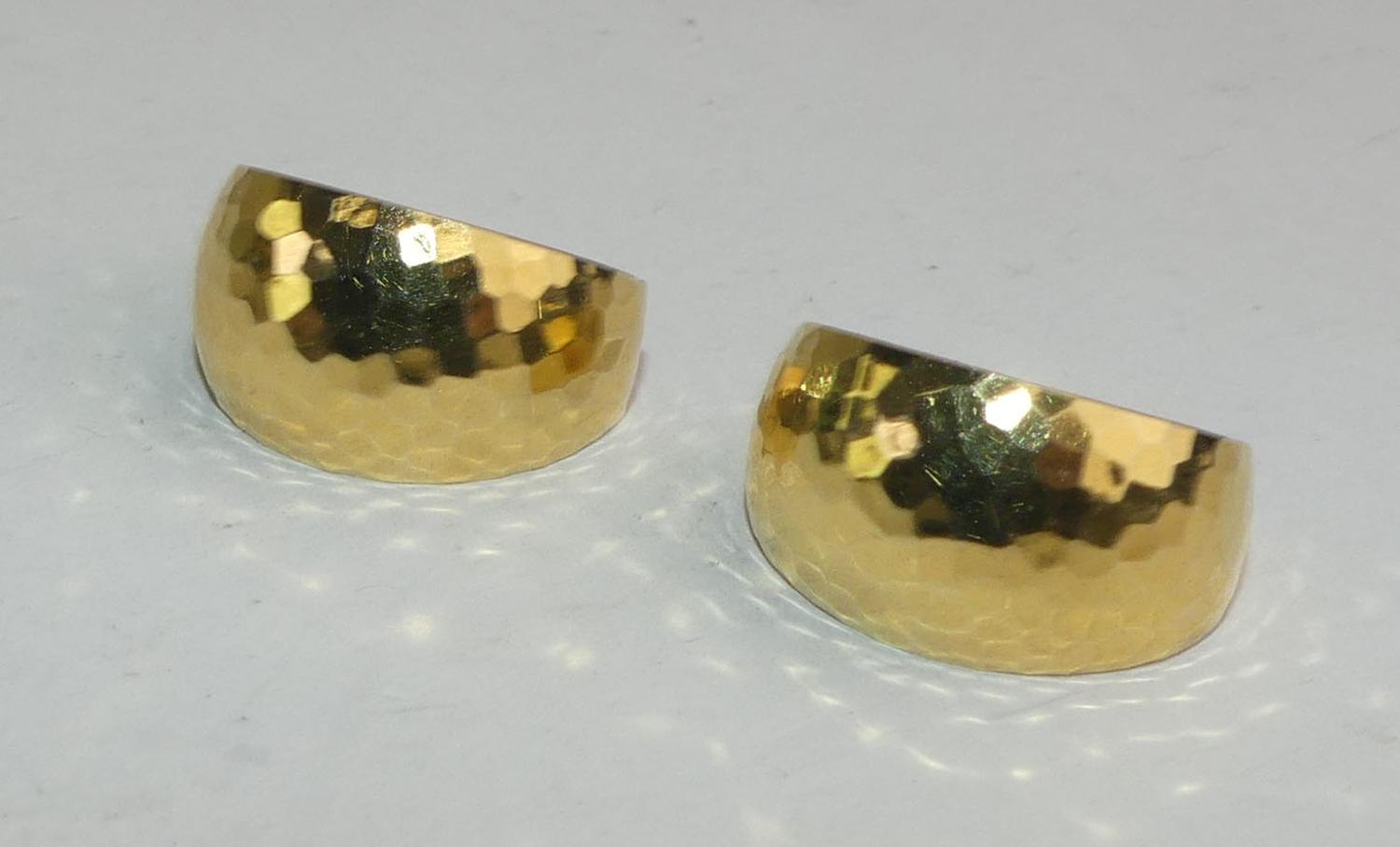 14k gold hammered hoop earrings, 4.4 grams, 7/8"