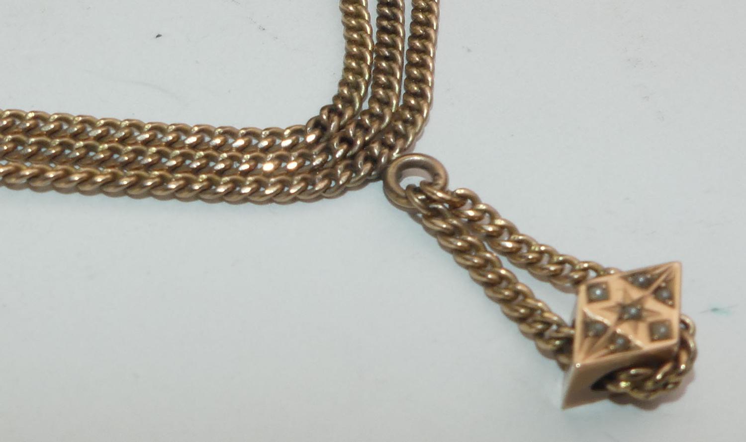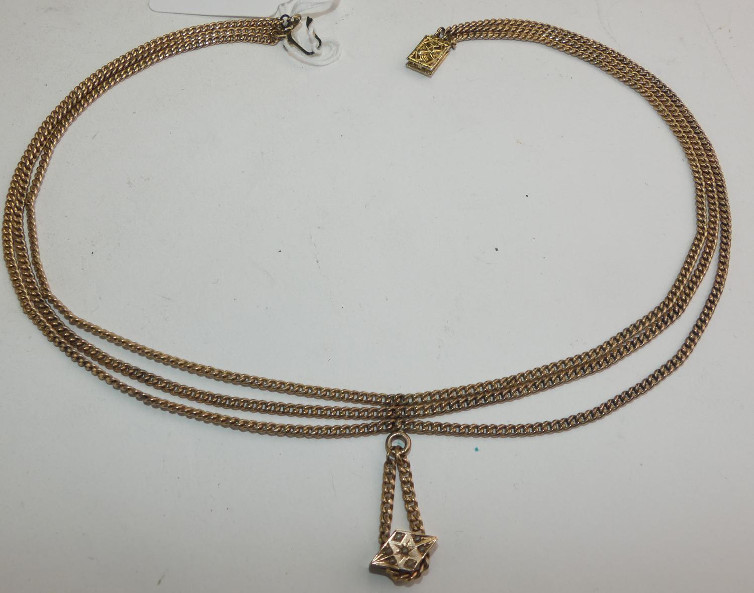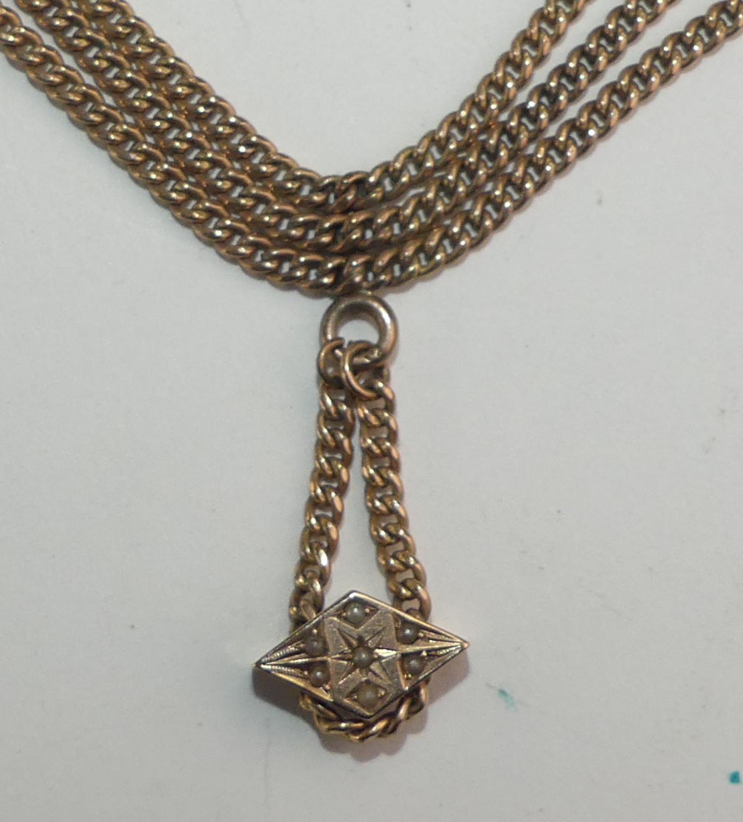 victorian 10k pink gold chain necklace and slider, converted, w/a 21grams gross weight, length 15 1/2"