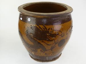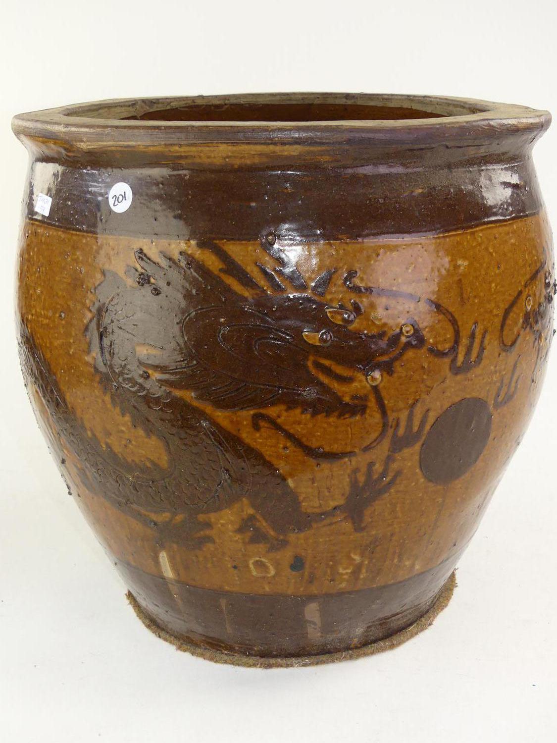 glazed chinese dragon jardinere, 16" x 17"