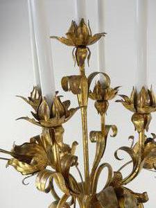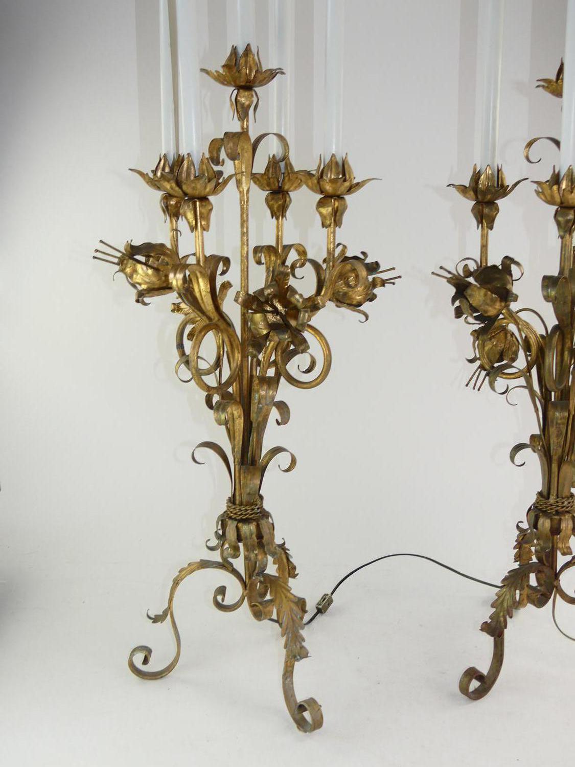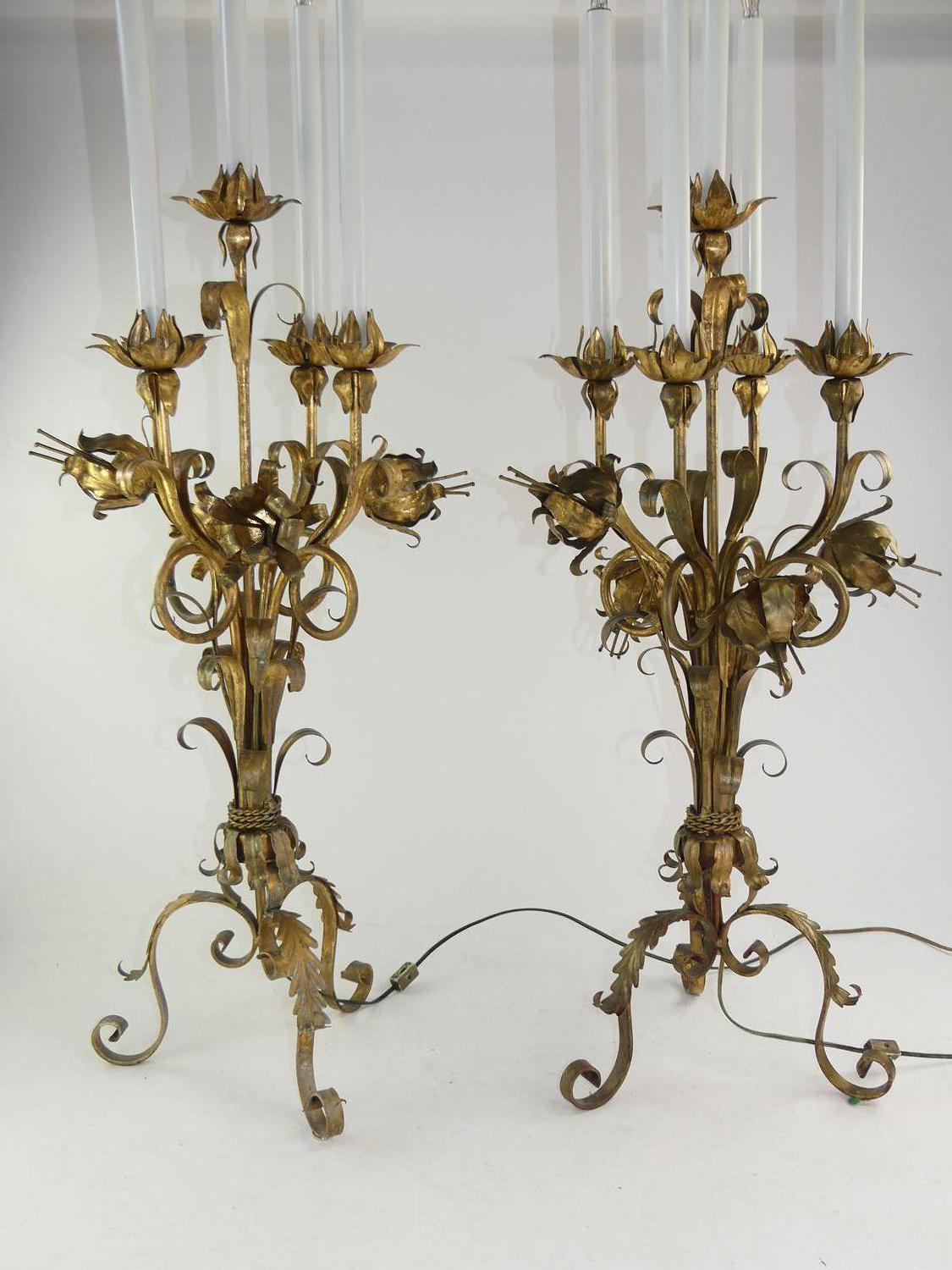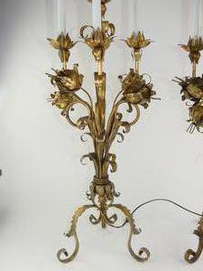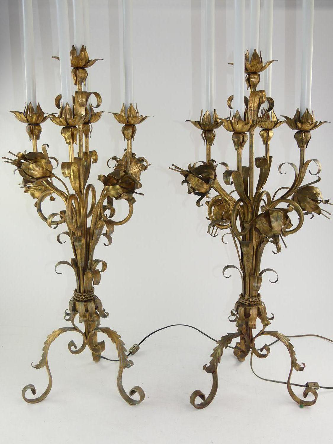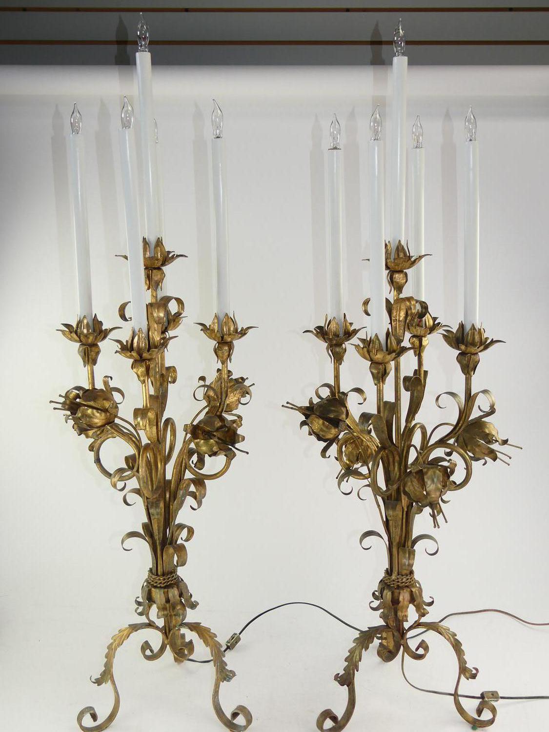 pair of italian florentine style 5 branch electrified candelabra, height 44"