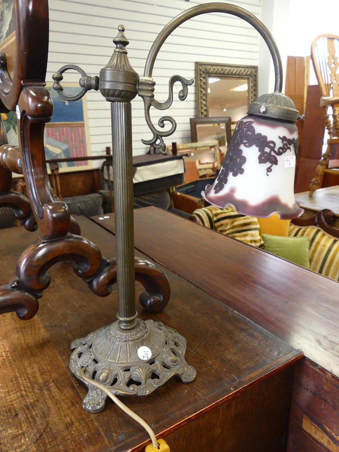 vintage art nouveau style dresser lamp with frosted glass shade, ht 29"