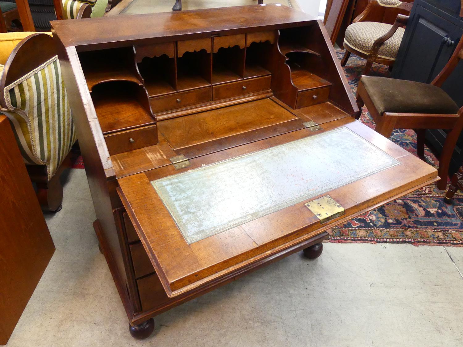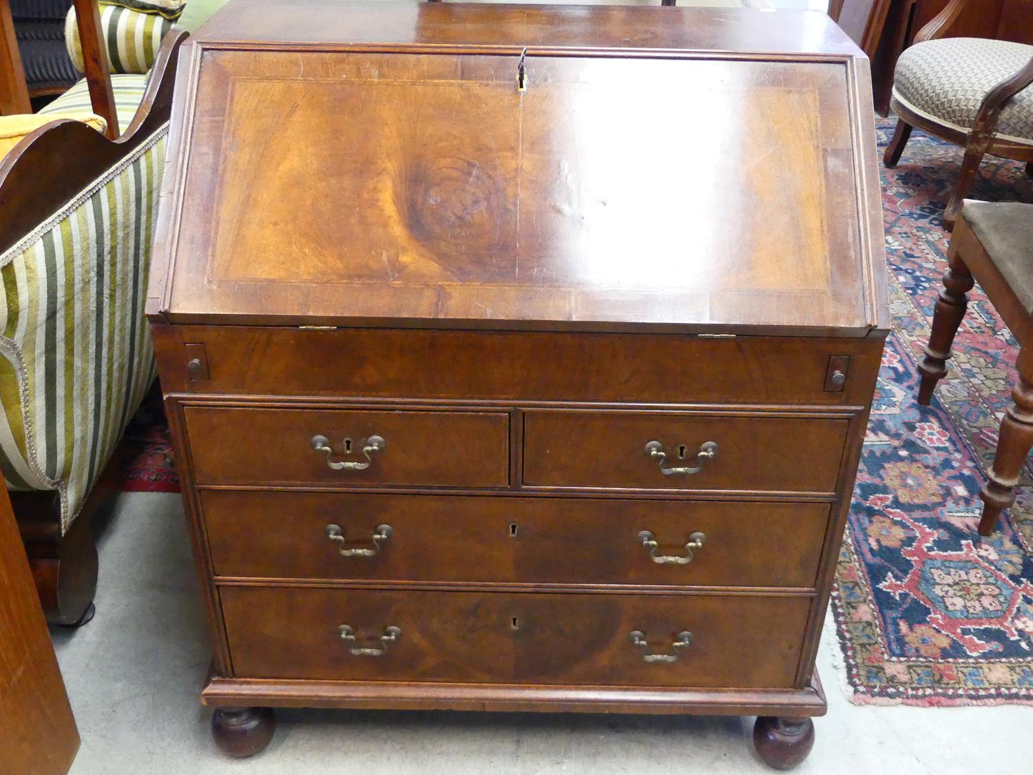 edwardian inlaid mahogany bureau, 35" x 30" x 19"
