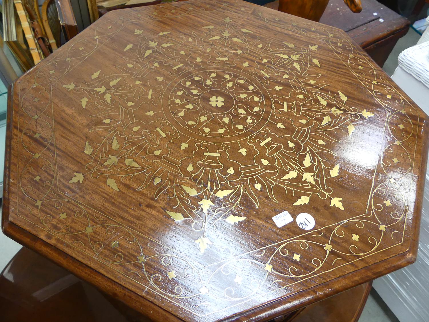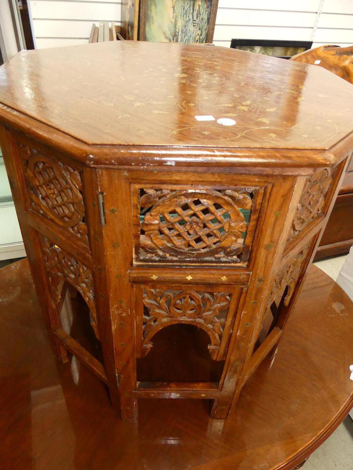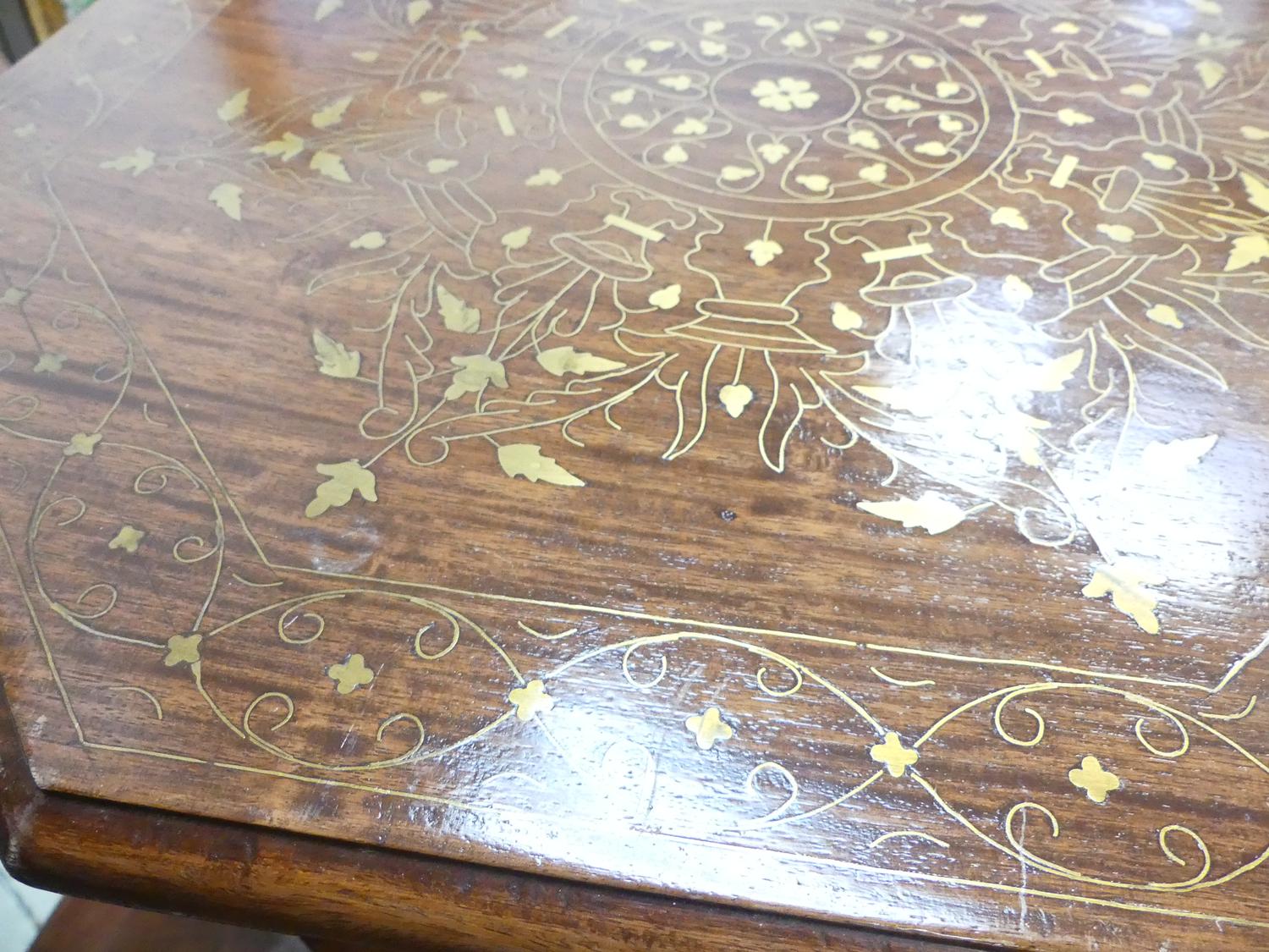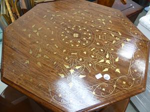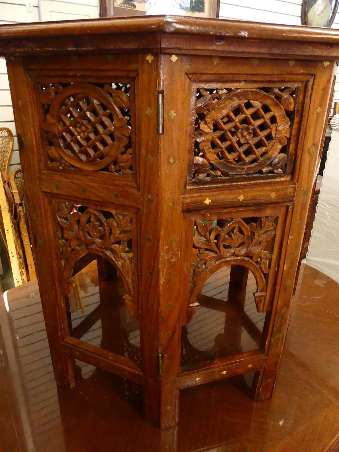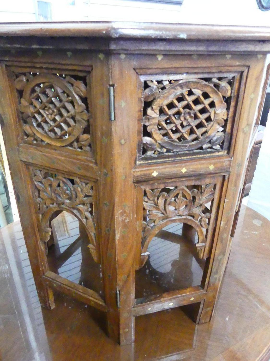 indian brass inlaid carved table, 22" x 22"
