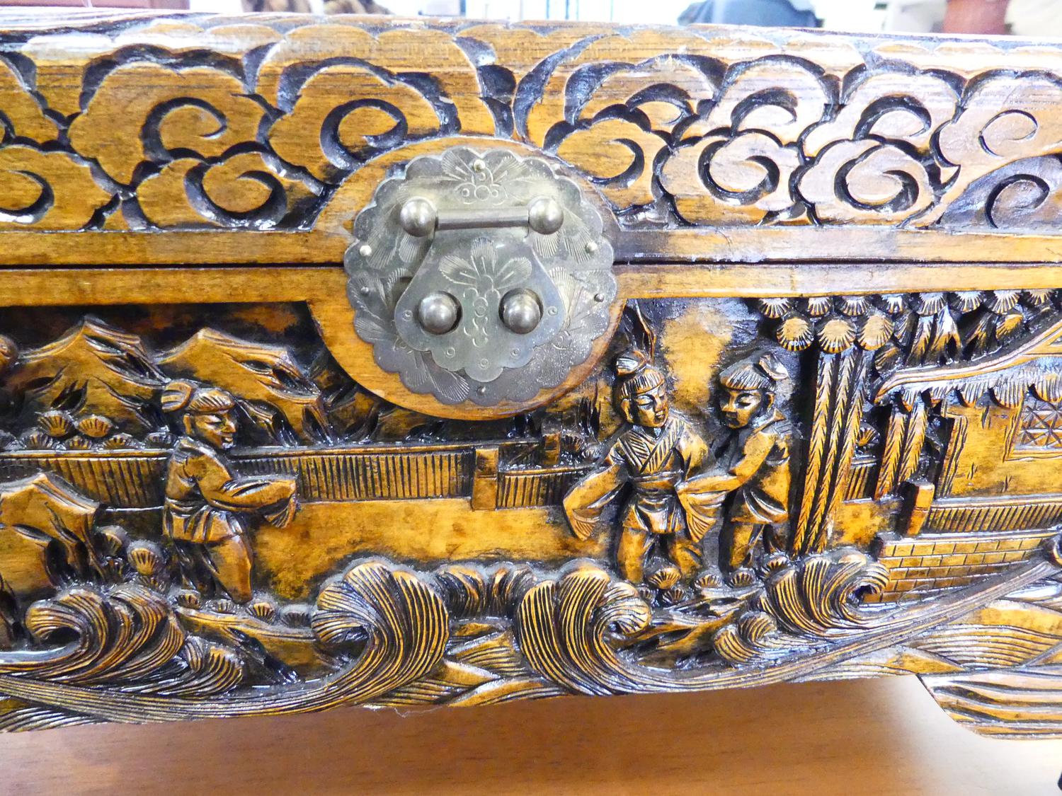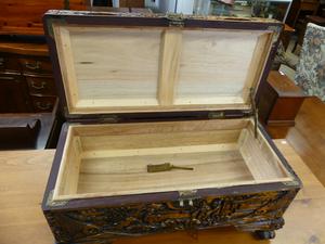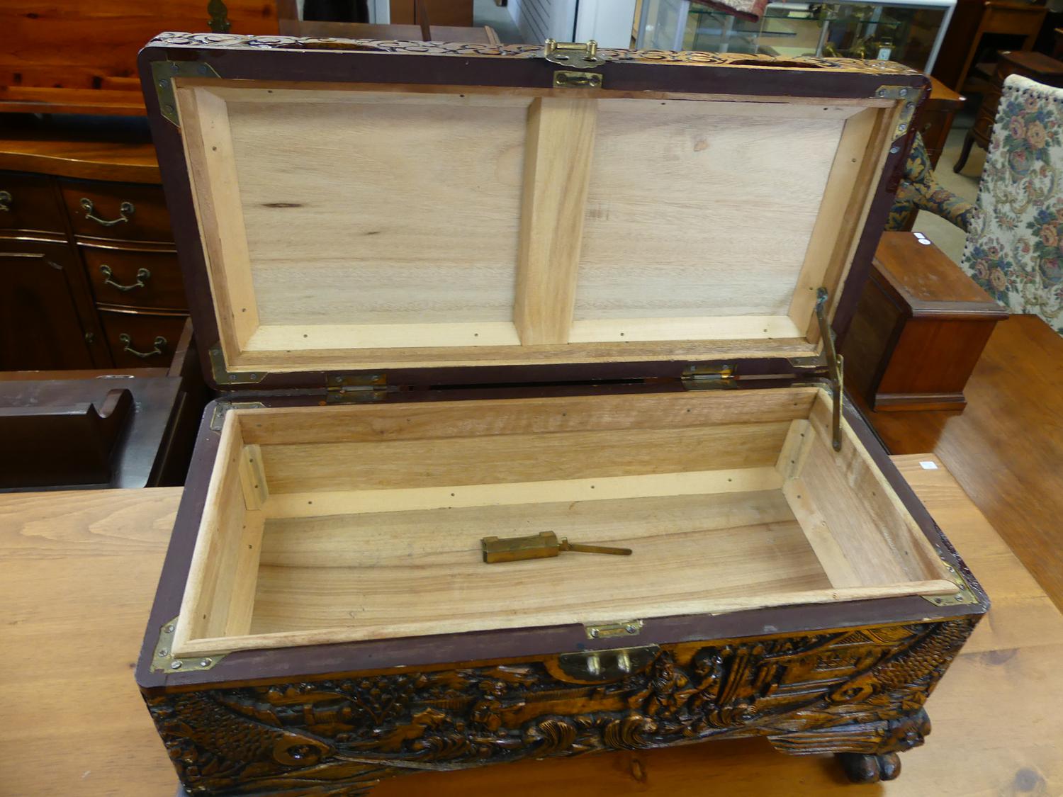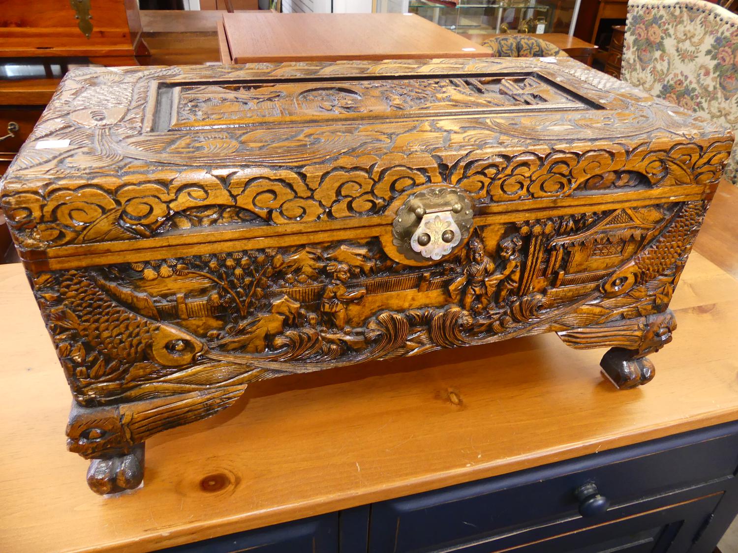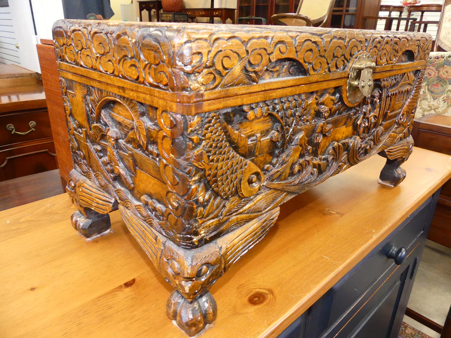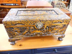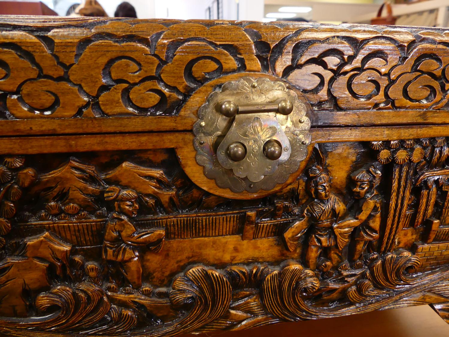 carved camphor chest, 12" x 23" x 11"