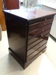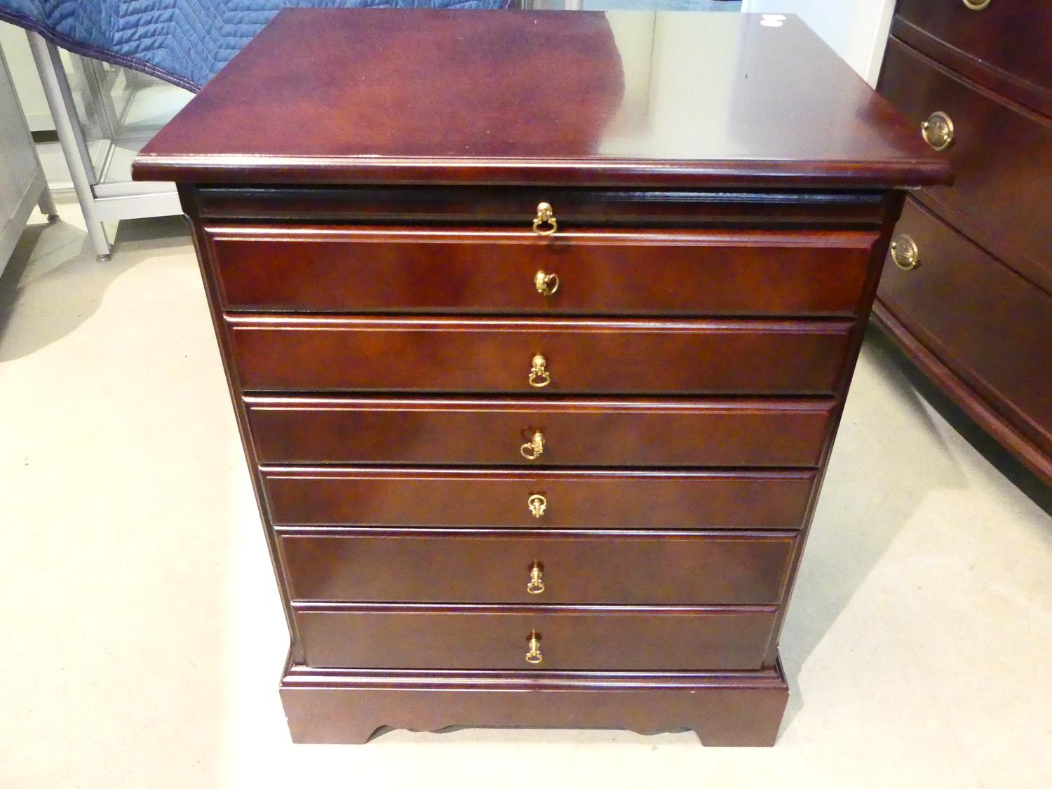 small mahogany 3-drawer chest of drawers, bombay furniture co, 25" x 25" x 13"